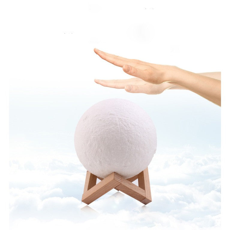 Lampa de veghe luna 3D Moon Light,lumina multicolora cu LED, 7 culori, schimbare culoare prin atingere, alimentare baterii, fara acumulator, stand din plastic inclus,