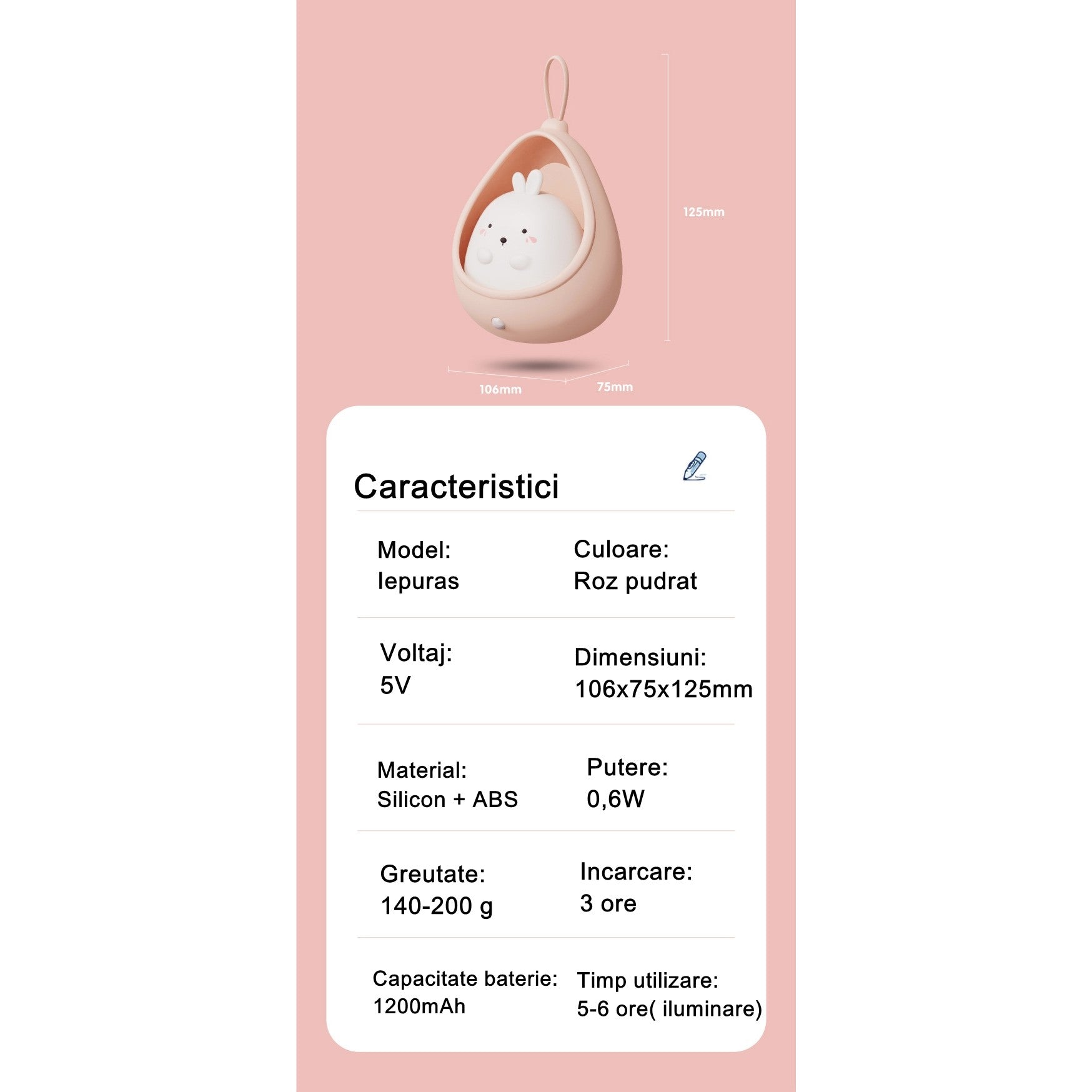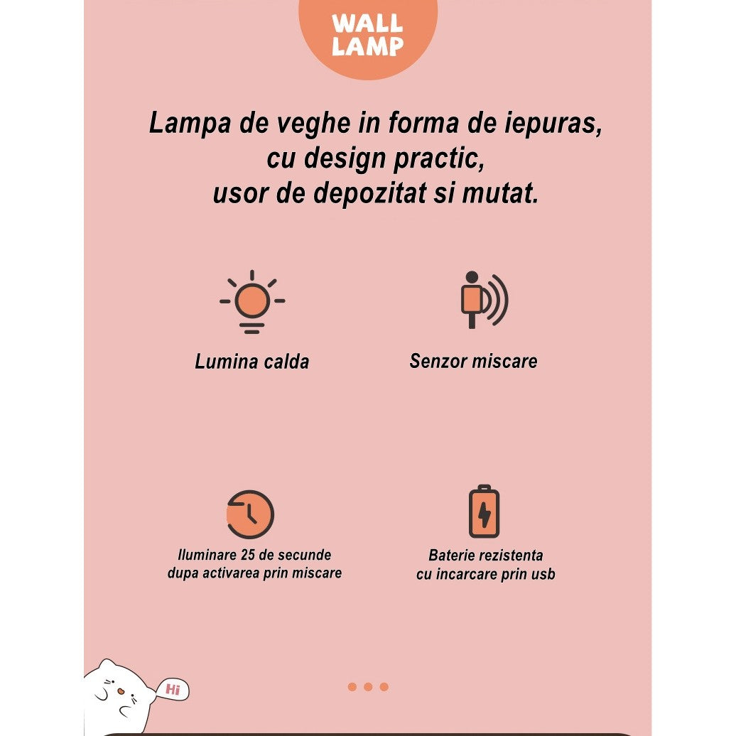 Lampa de veghe portabila cu 2 moduri de functionare silicon non-toxic, reincarcabila USB, senzor miscare