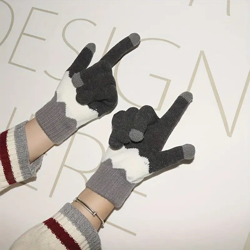 Manusi de Dama, Flippy, Model Ondulat, Functie Touchscreen (ecran tactil), Material Acril Tricotat, Manseta Elastica, Interior Catifelat, Marime Universala, Negru/Gri