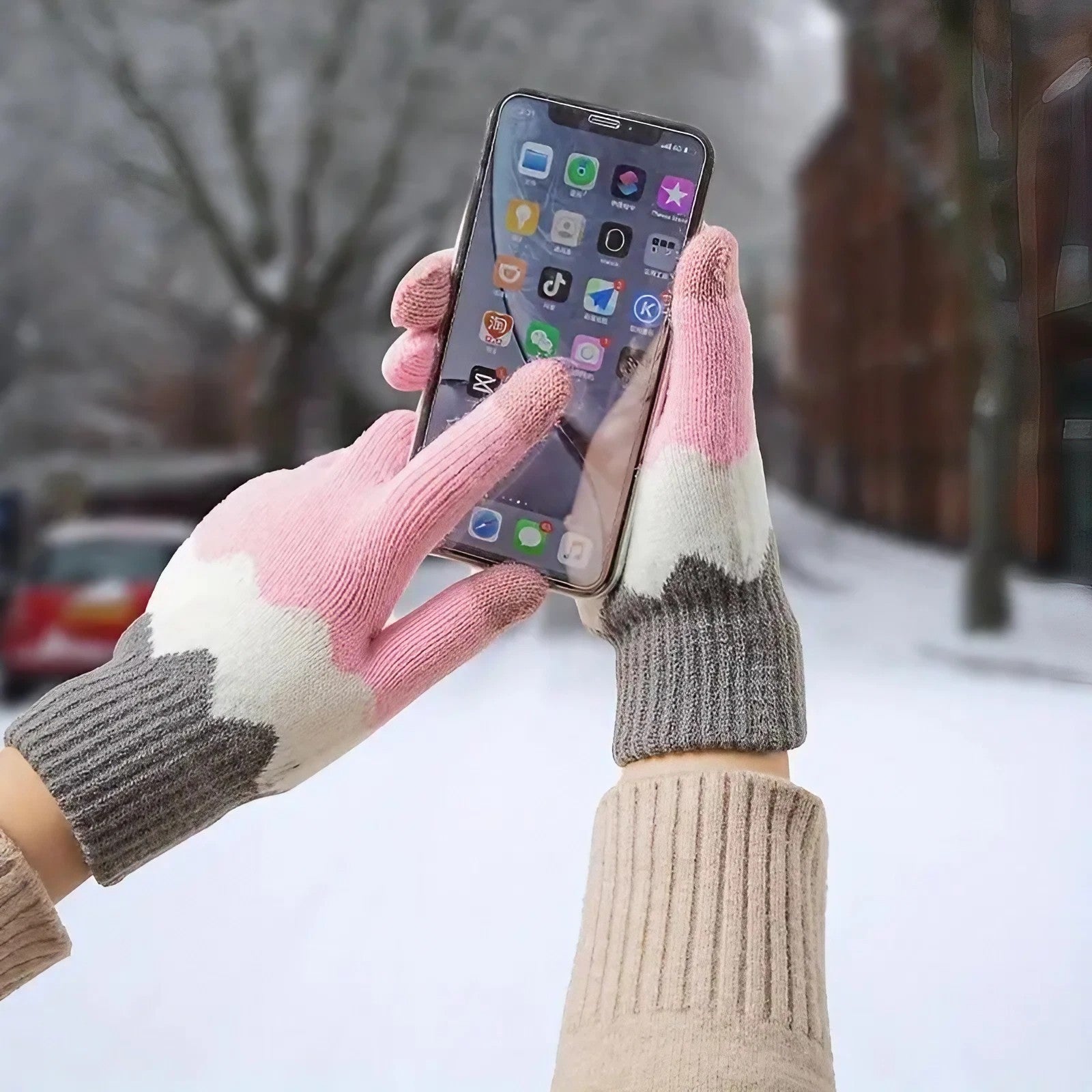 Manusi de Dama, Model Ondulat, Functie Touchscreen (ecran tactil), Material Acril Tricotat, Manseta Elastica, Interior Catifelat, Marime Universala