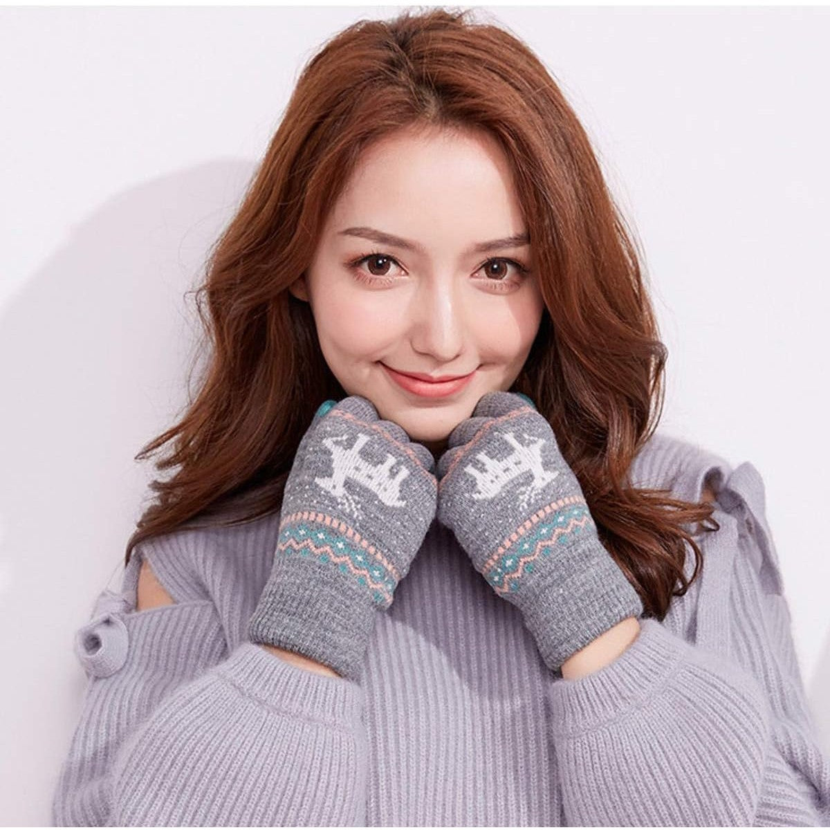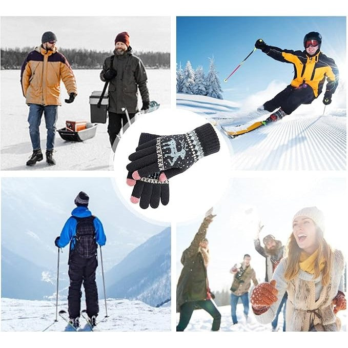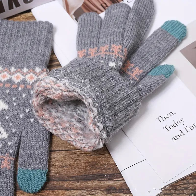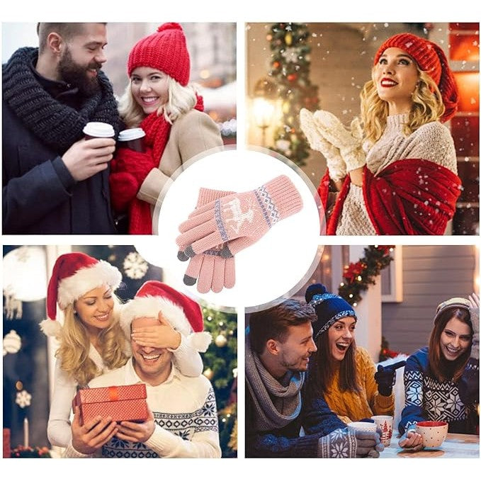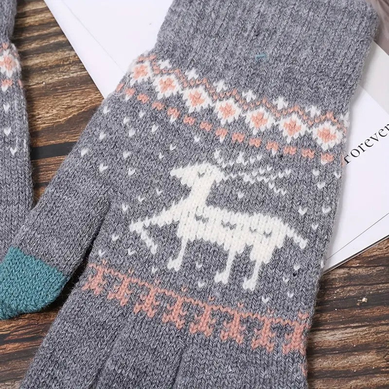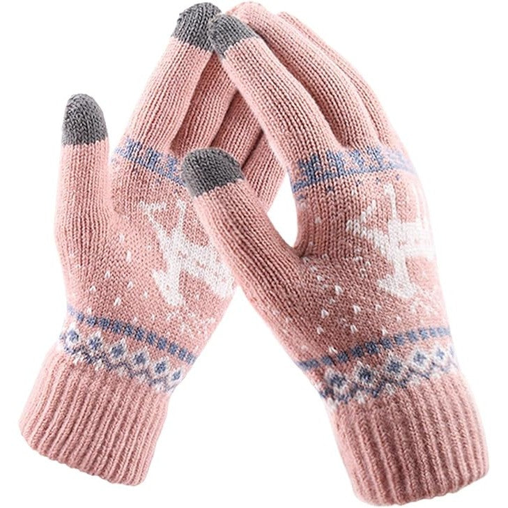 Manusi de Dama, Model Ren, Functie Touchscreen (ecran tactil), Material Acril Tricotat, Manseta Elastica, Interior Catifelat, Marime Universala