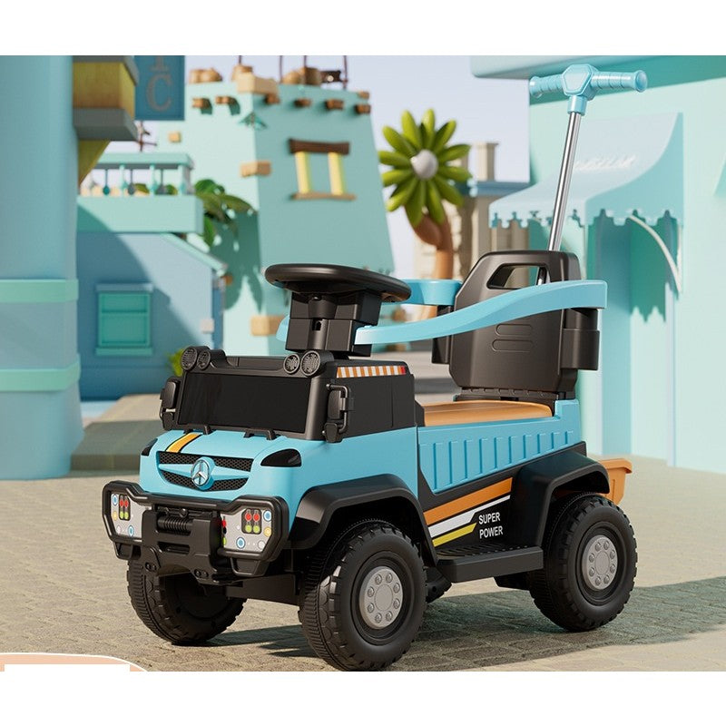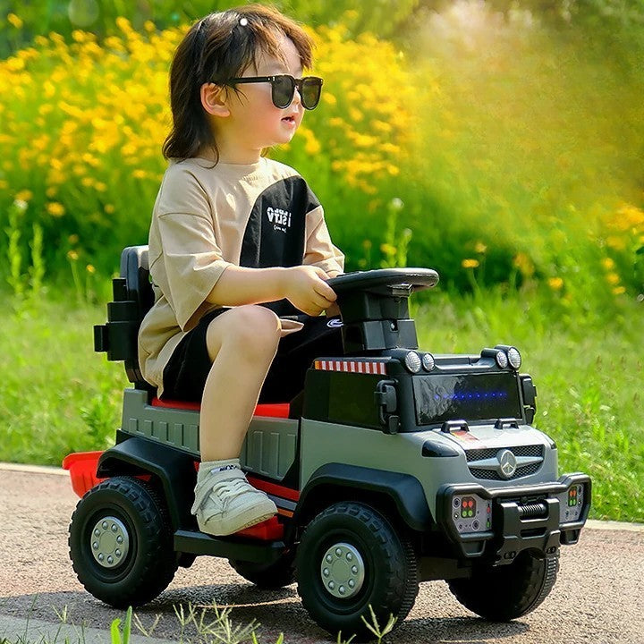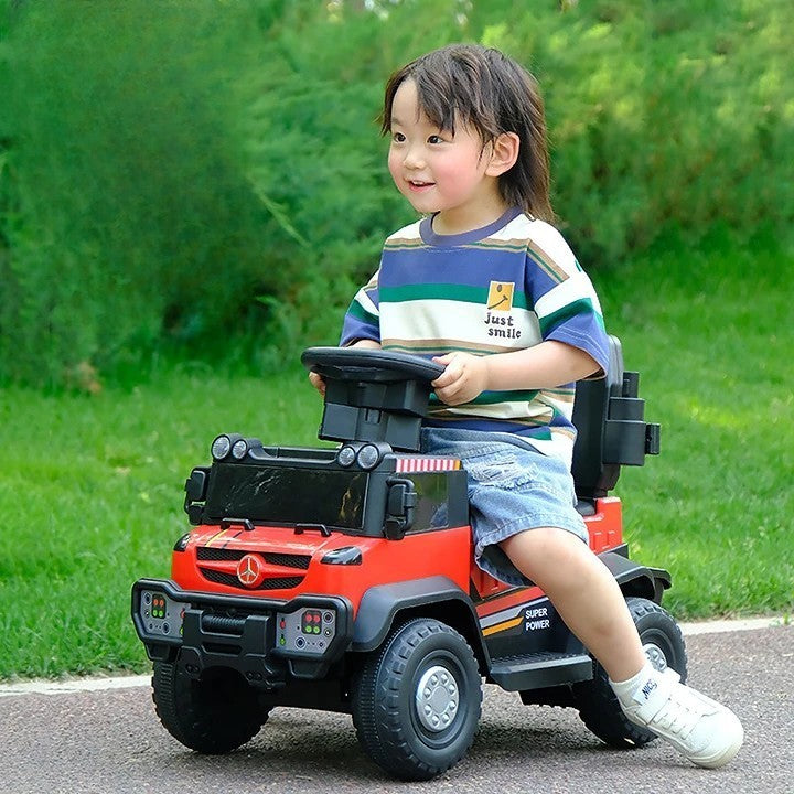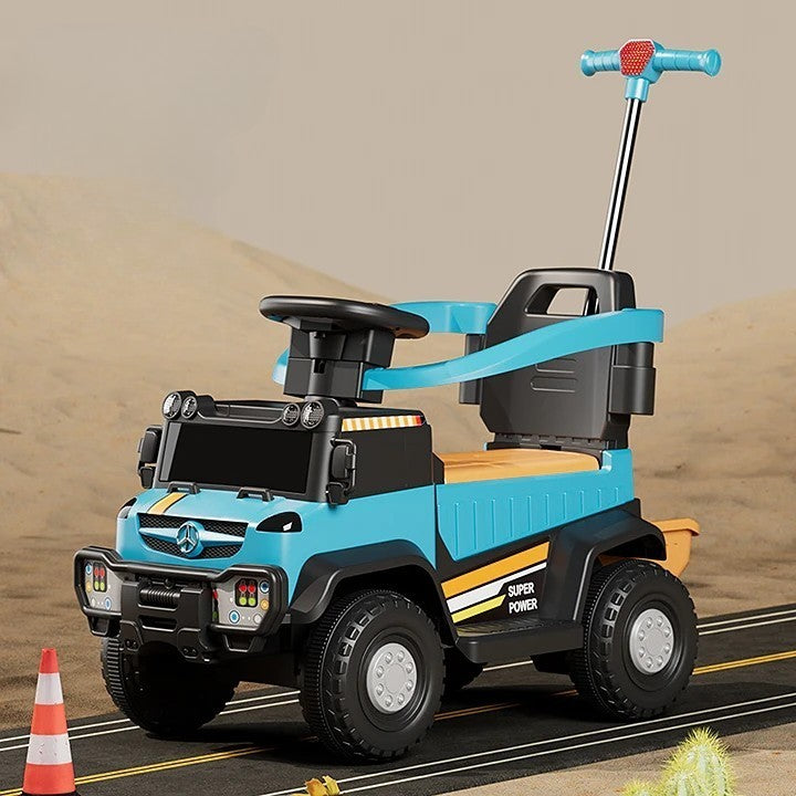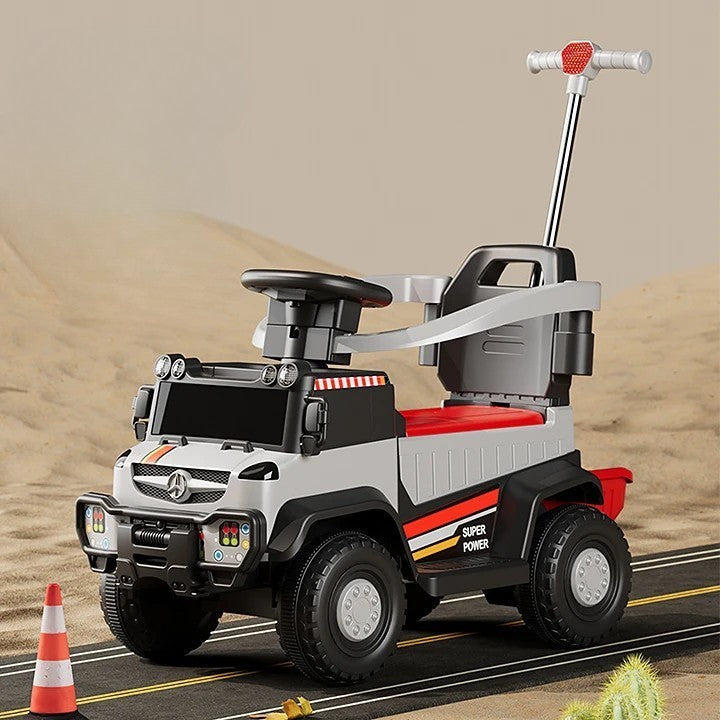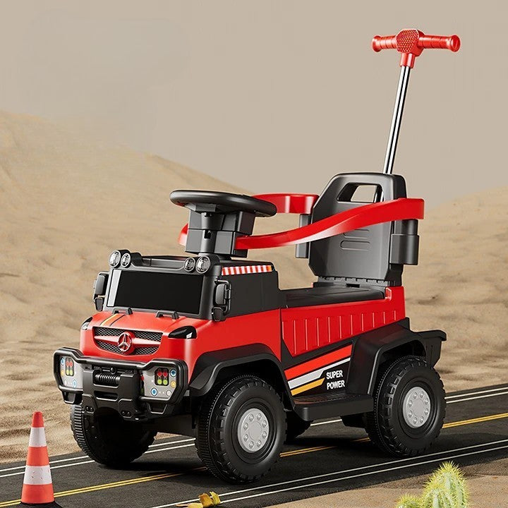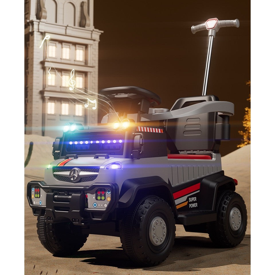 Masinuta Electrica, pe 4 Roti, cu Telecomanda si Maner Detasabil, Cos de Depozitare, Lumini Led si Muzica, +1 an, Greutate Portanta 40 kg
