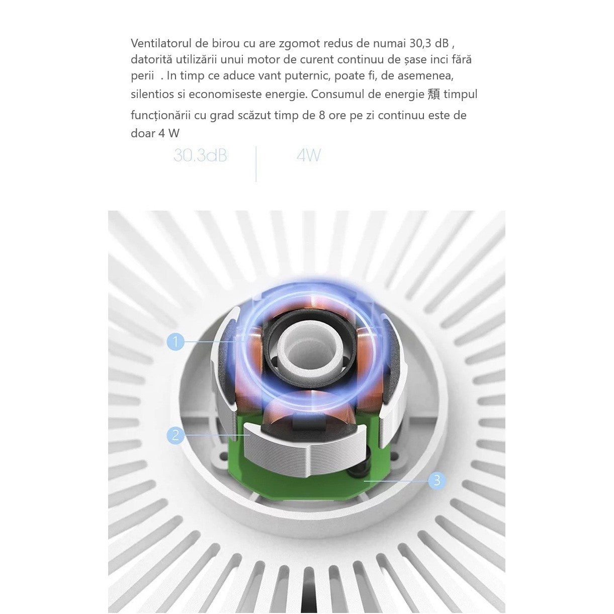 Mini ventilator pentru birou cu usb, rotire 360 grade, 3 viteze, 1500 mA