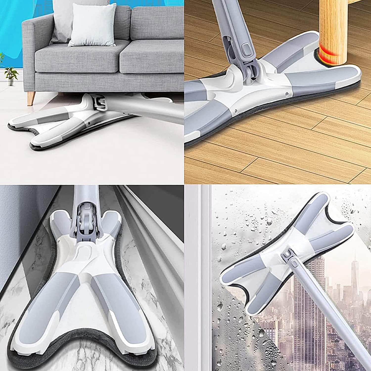 Mop Plat cu Laveta din Microfibra, Pentru Uz Casnic, Sistem de Stoarcere X, Tija Telescopica , Rotire 360°