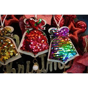 Ornament de brad clopotel cu paiete model 2