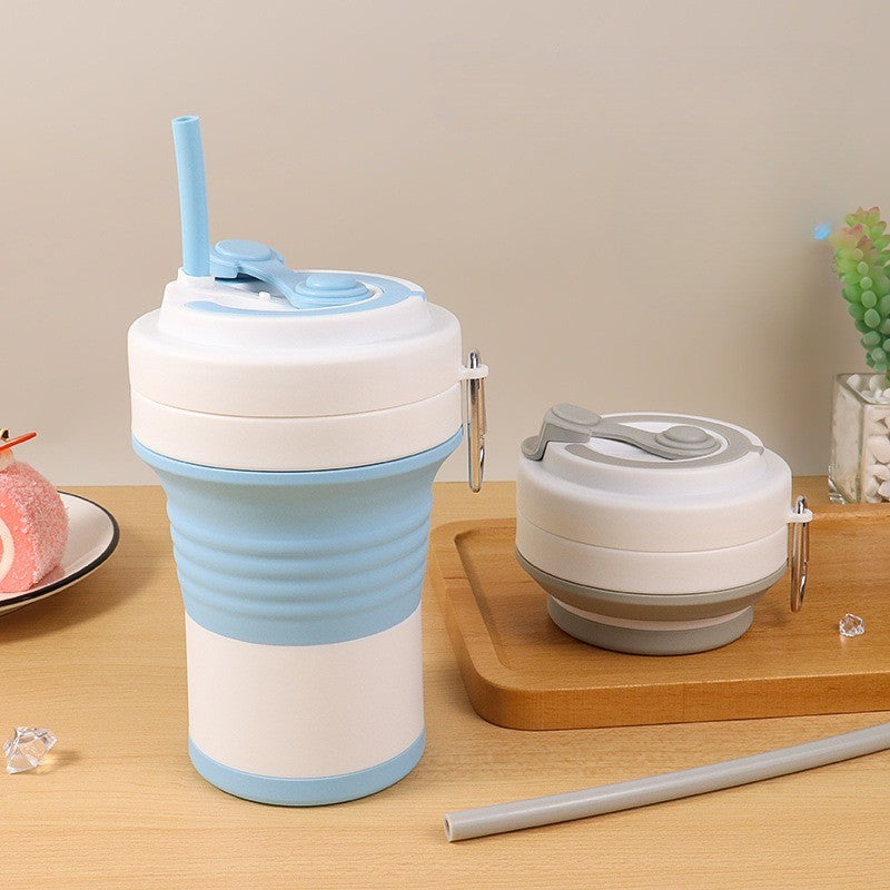 Pahar pliabil din silicon pentru calatorii, camping, 750 ml, pai inclus
