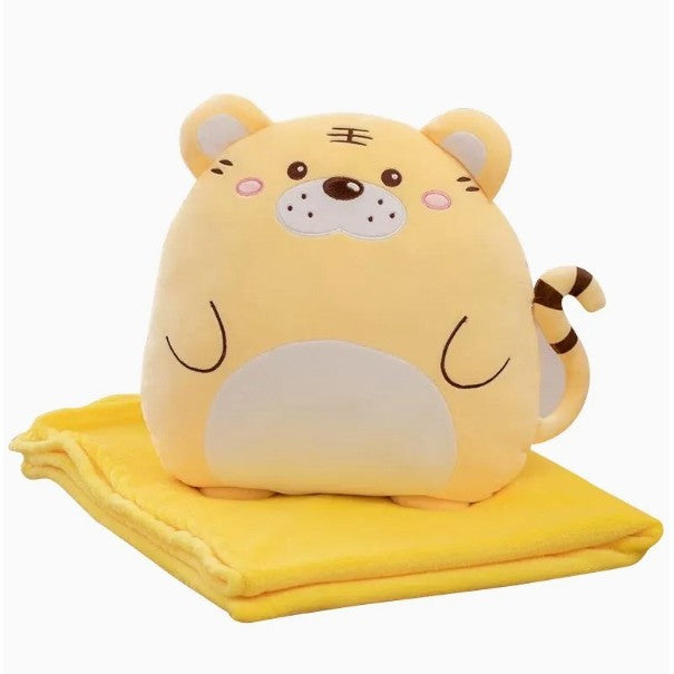 Patura 2in1 pentru Pat sau Canapea, Model Jucarie Tigru cu Spatiu de Depozitare Patura, Microfibra