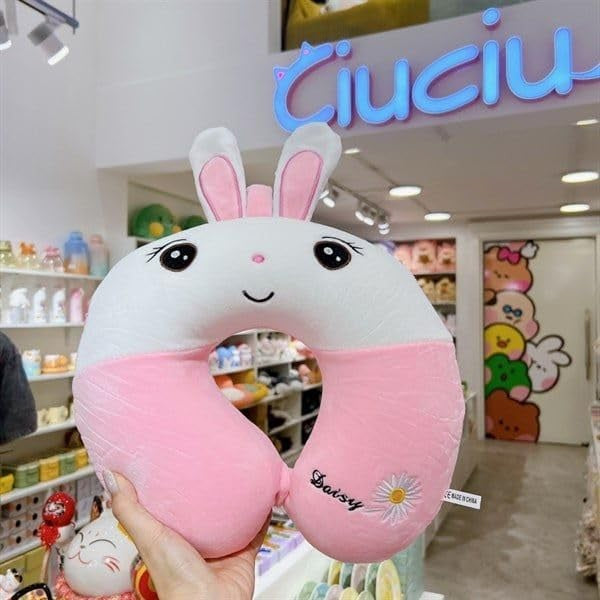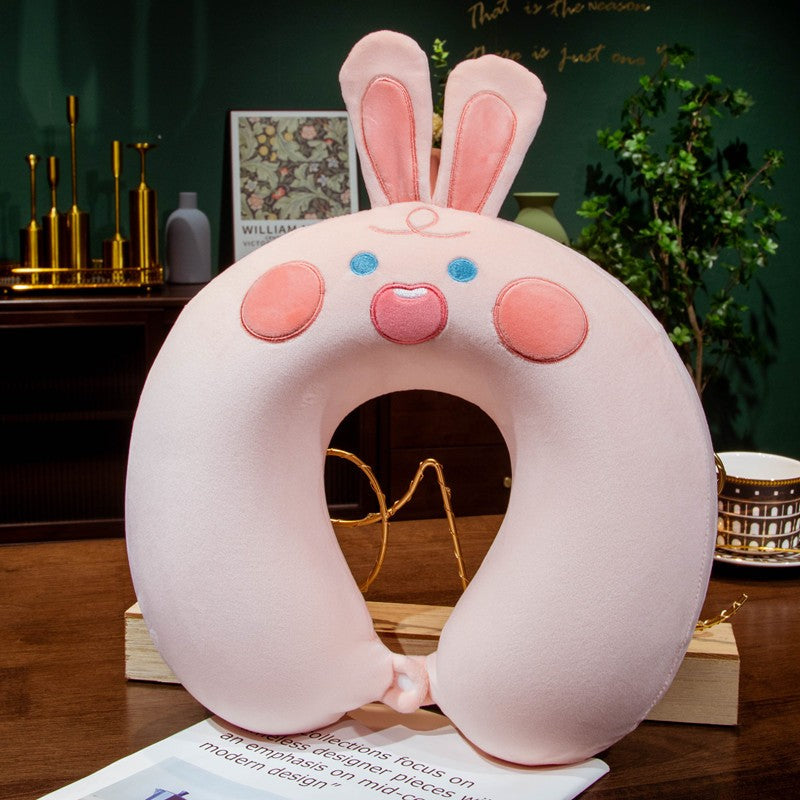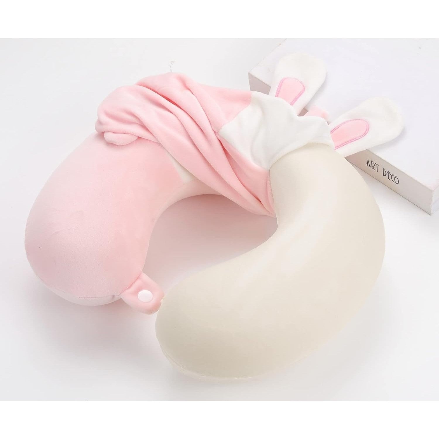 Perna de Calatorie in Forma de U, Pentru Gat si Cap, Umplutura din Spuma cu Memorie,Model Iepuras, Accesoriu de Voiaj, Birou, Masina, Sistem Prindere Capse