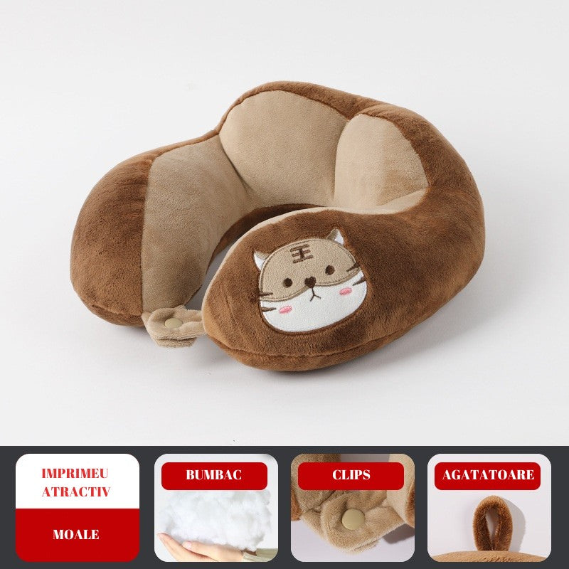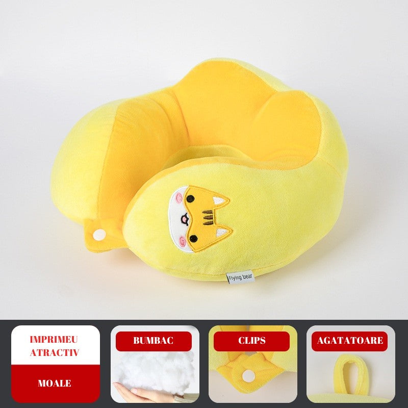 Perna de Calatorie, Pentru Gat si Cap, Umplutura din Bumbac,cu Model Brodat Pisica
