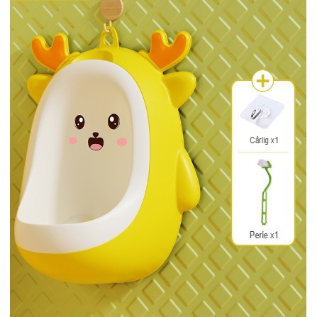 Pisoar pentru Baieti, 0-8 Ani, in Forma de Cerb, Perie Inclusa, Montare pe Perete, Carlig Autoadeziv Inclus