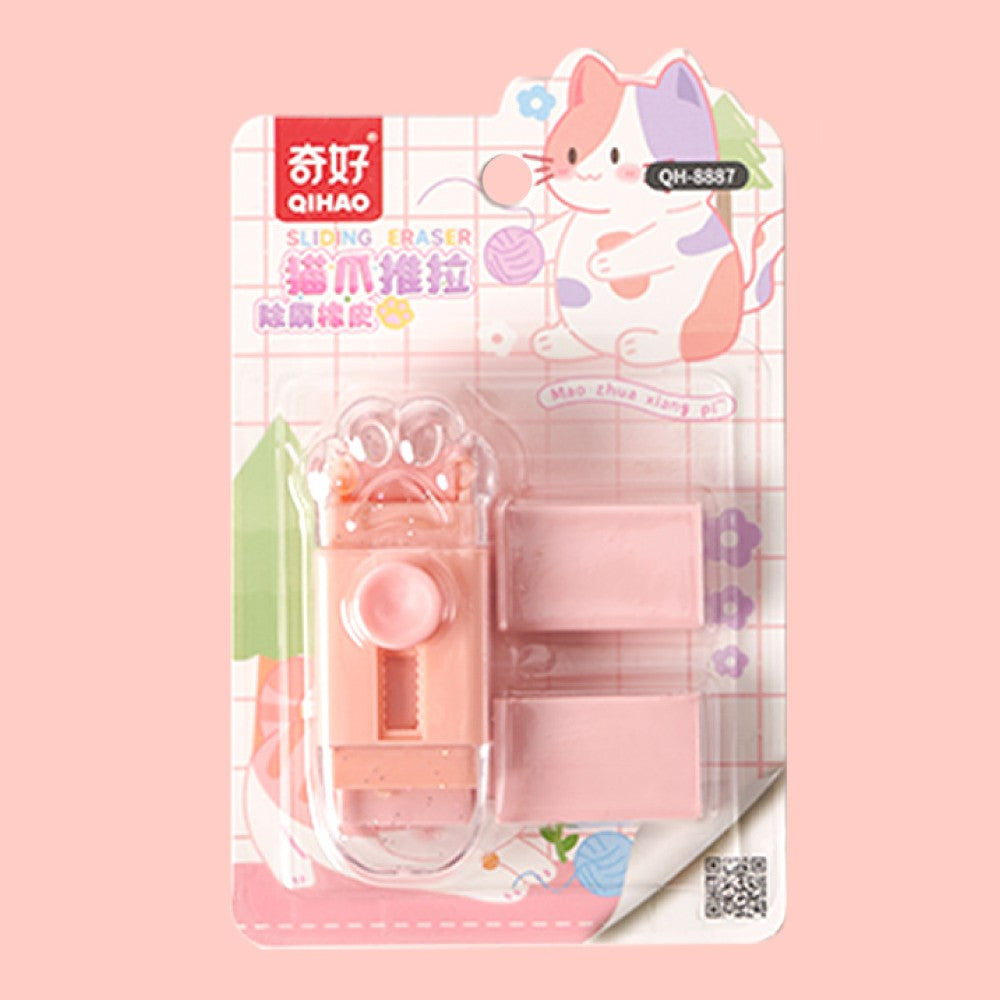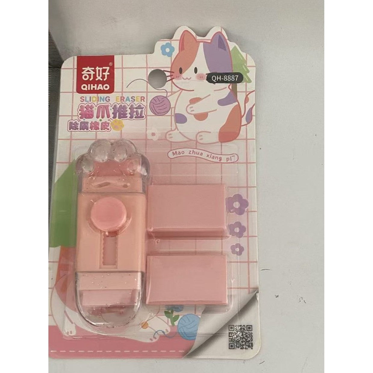 Radiera Retractabila, Model Pisica Push-Pull pentru elevii, Radiera de tip Push, Doua Radiere de Rezerva in