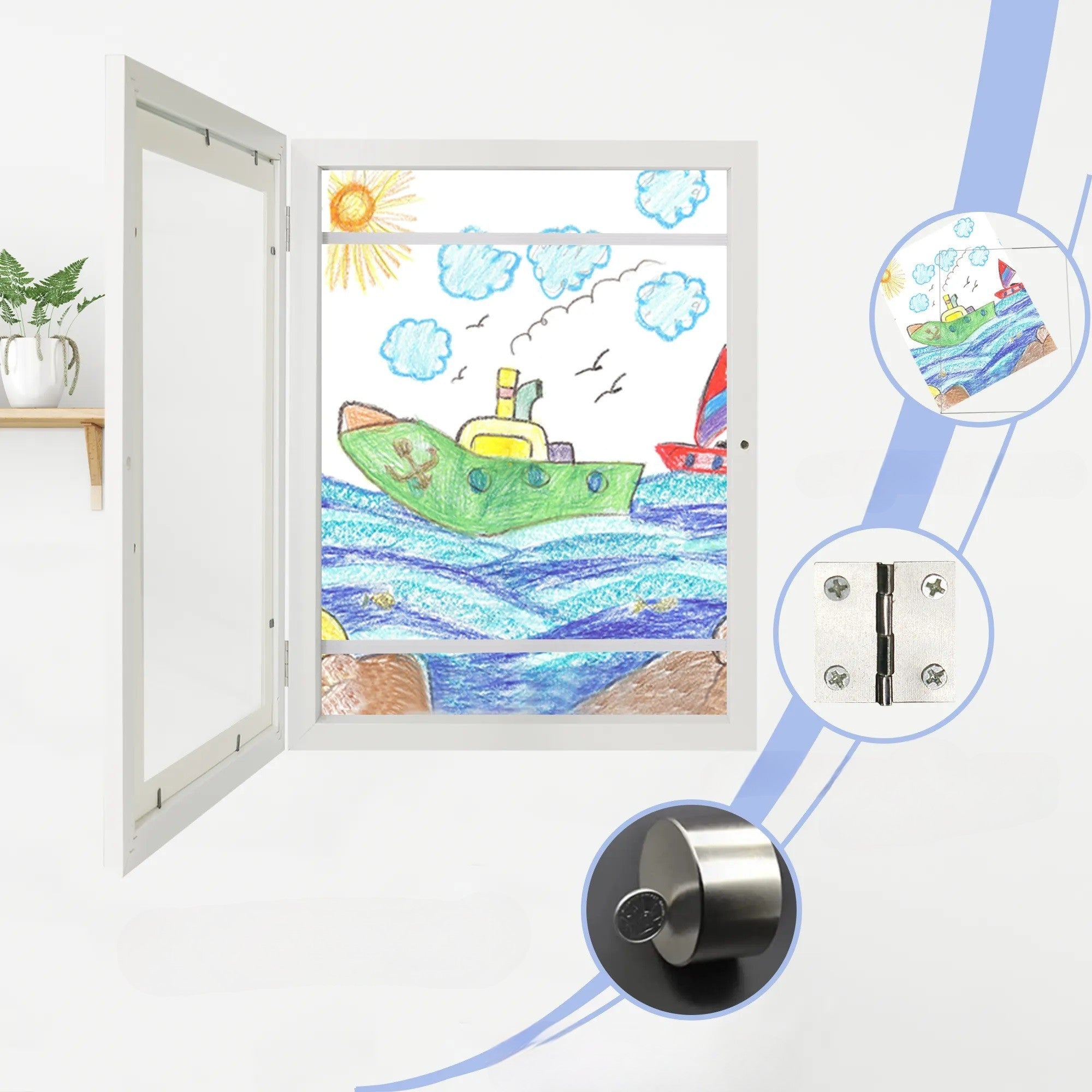 Rama Foto din Lemn, cu Spatiu Pentru Depozitare, Pentru Desene si Picturi A4, Sticla Securizata, Rama MDF