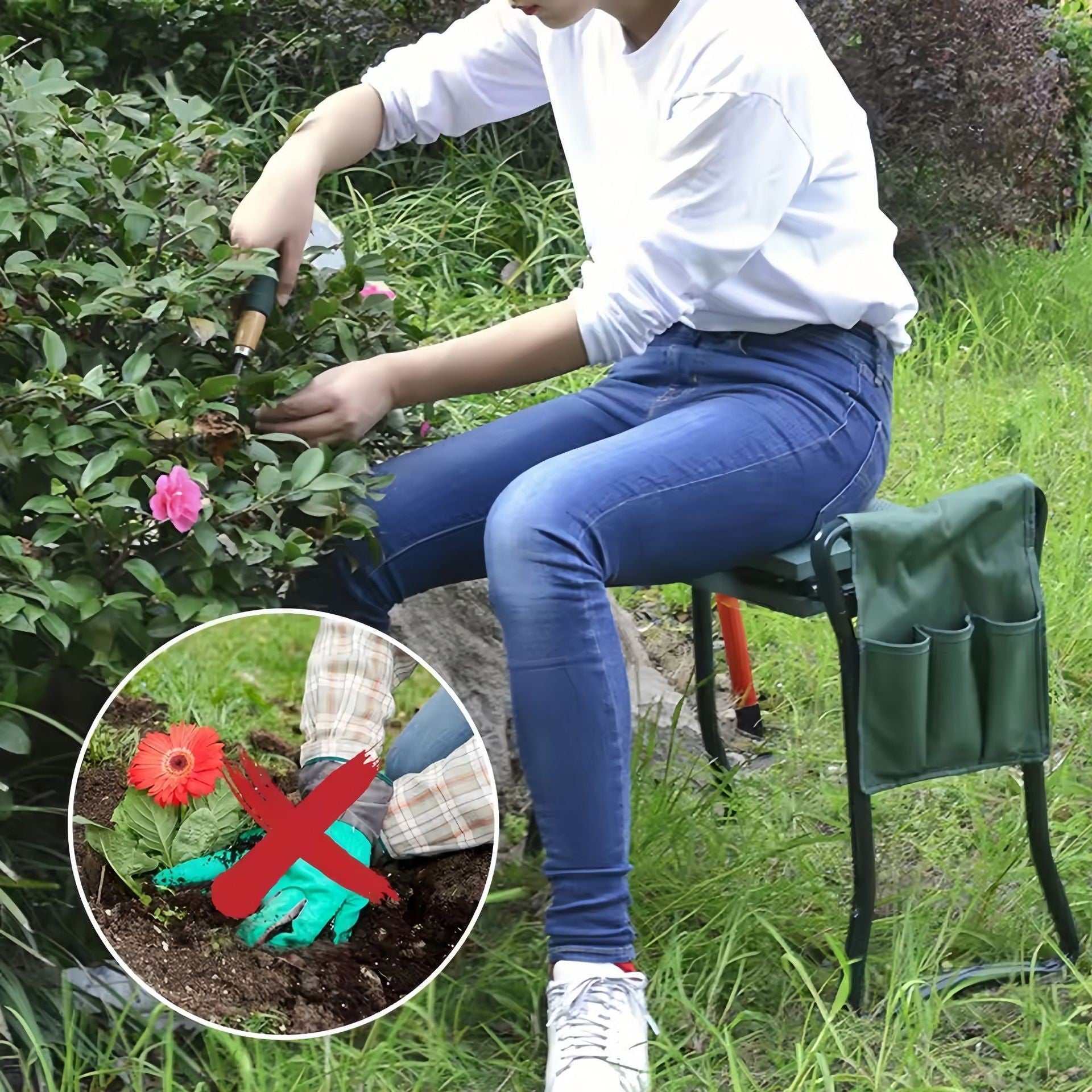 Scaun Multifunctional pentru Gradinarit, Inaltime Reglabila, Geanta Laterala pentru unelte,Pliabil