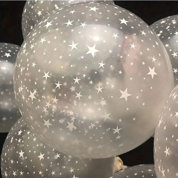 10 Baloane din Latex Transparente, Model Party,Stelute Albe, 2.8 g