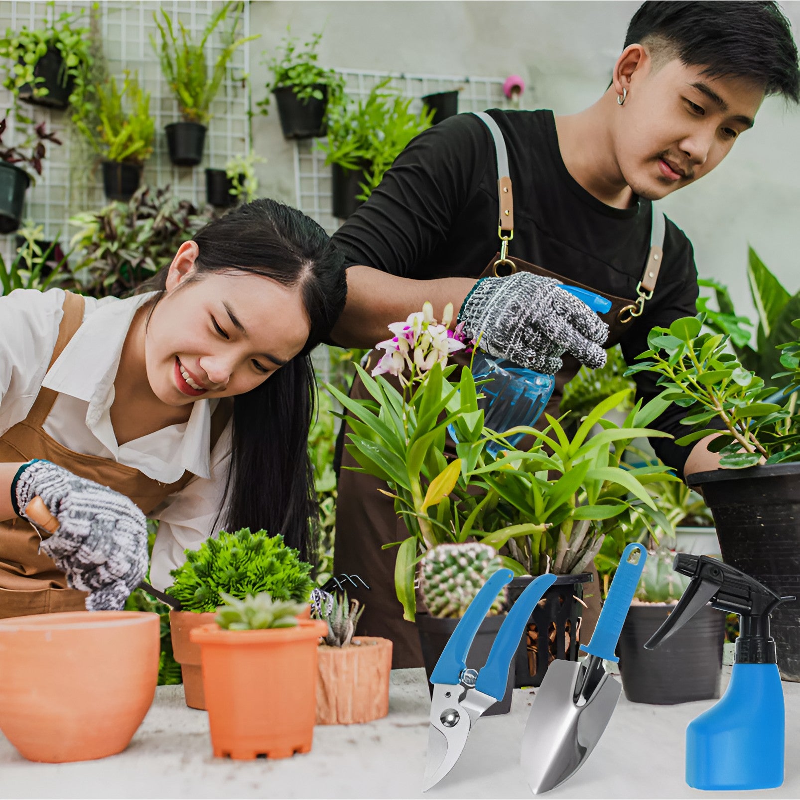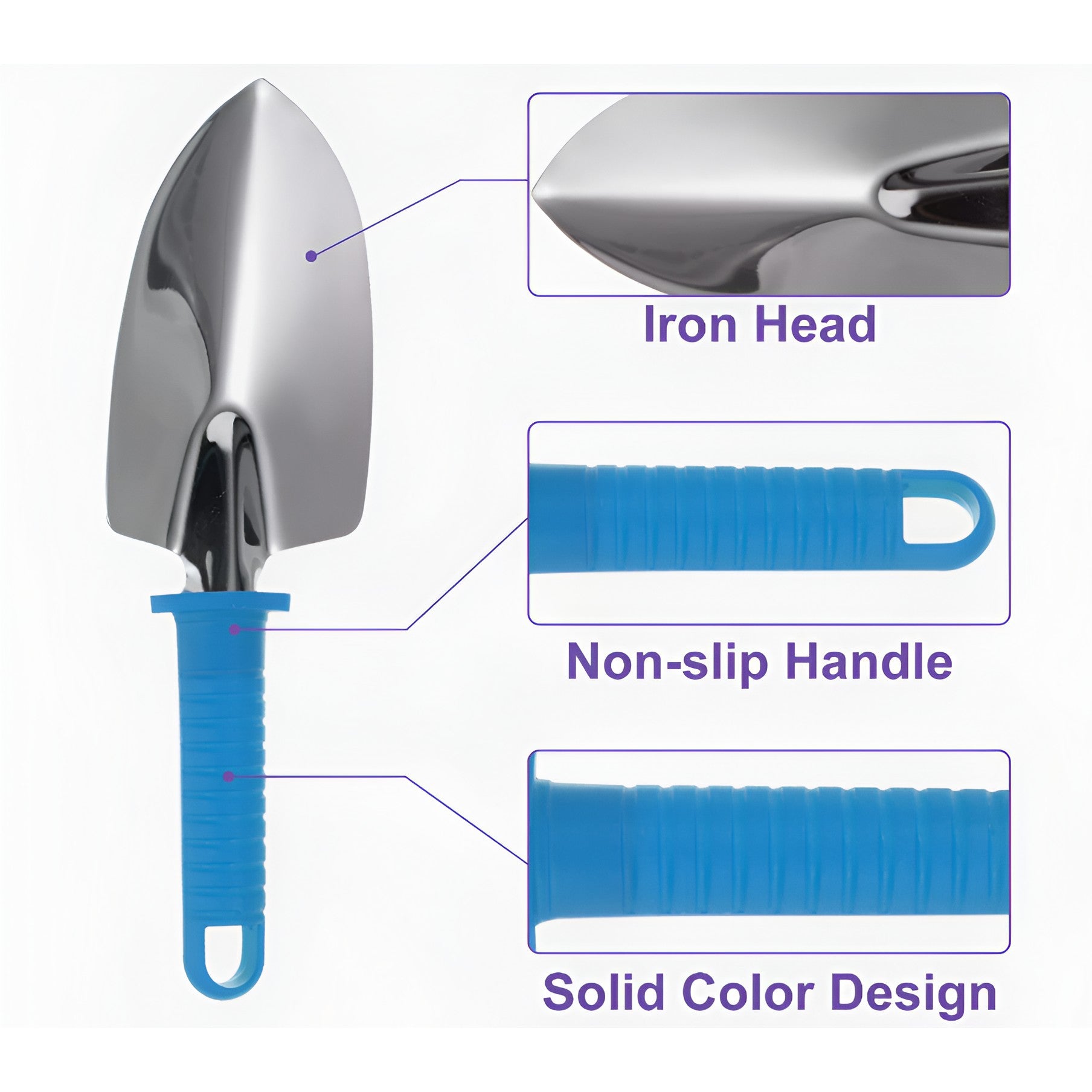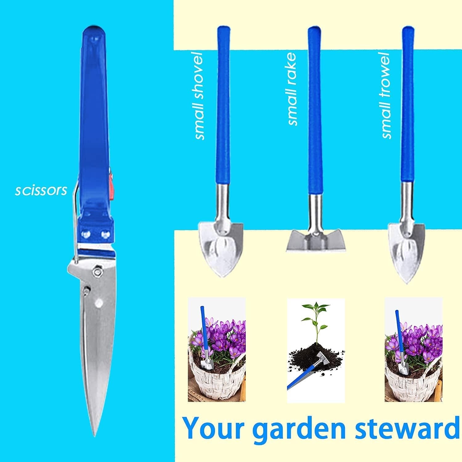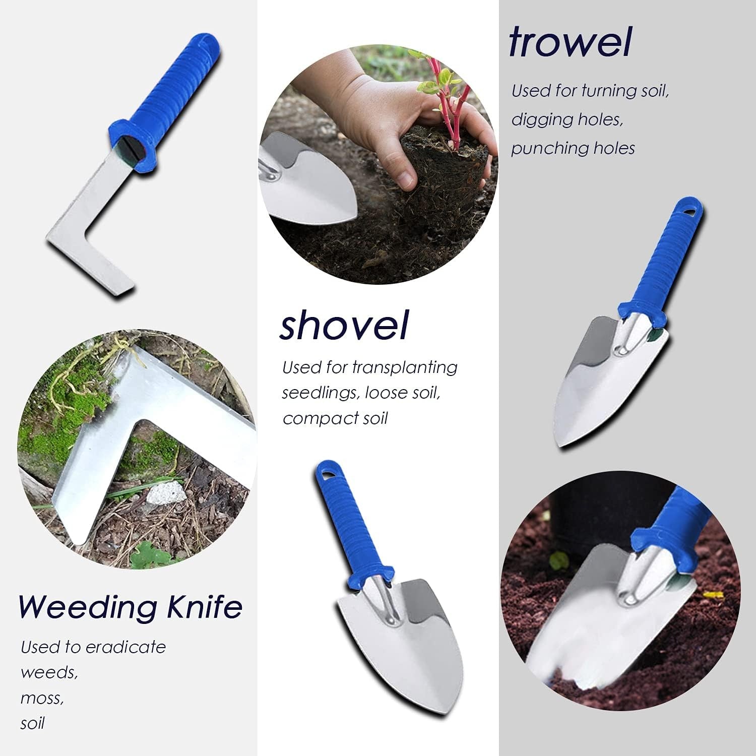 10 Unelte de Gradina, pentru Plantare Prelucrare Sol si Ingrijire Plante, Manere Albastre, Material PVC si Otel Inoxidabil, Inclusa