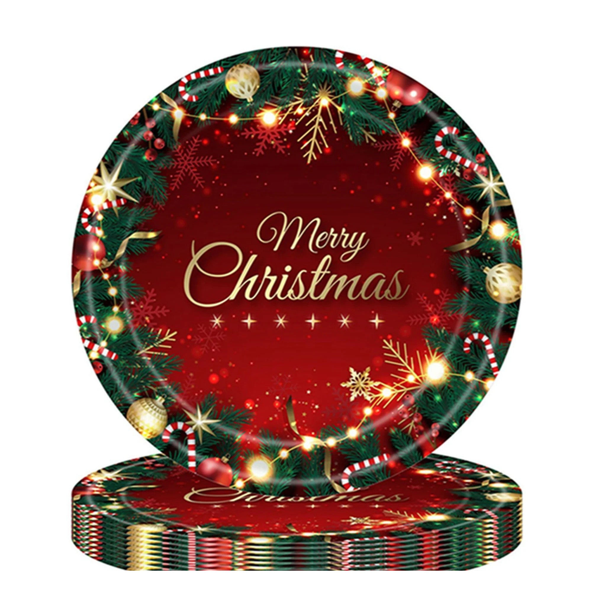16 Farfurii de Unica Folosinta, Model Merry Christmas, Tematica Craciun