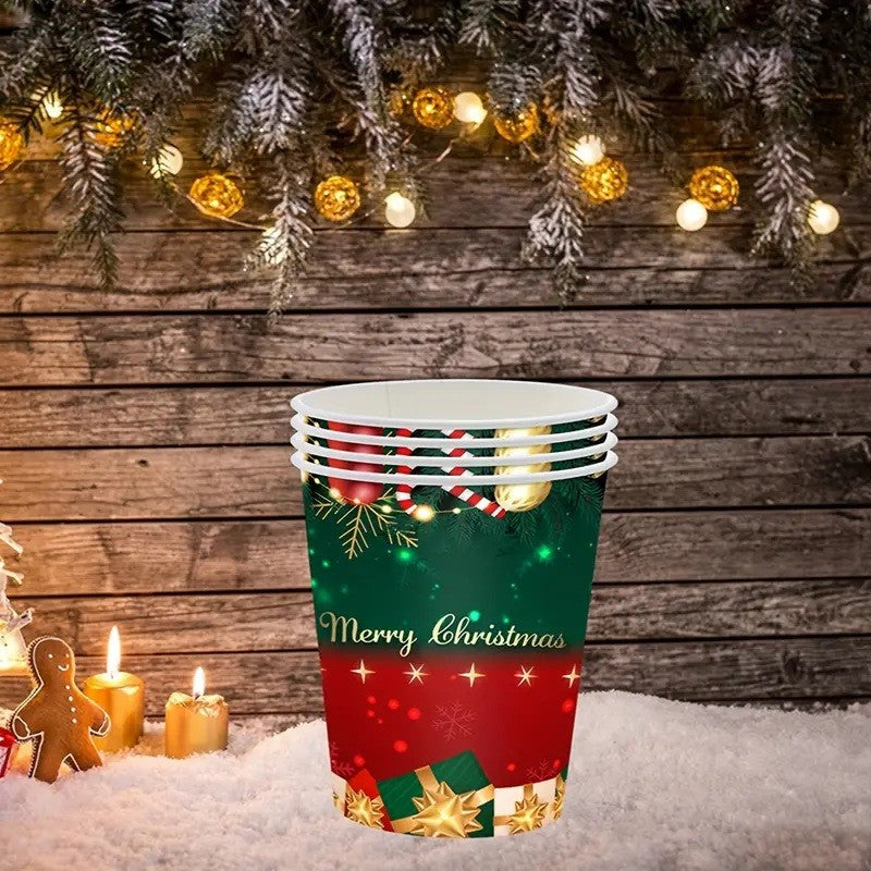 16 Pahare de Unica Folosinta, Model Merry Christmas, Tematica de Craciun