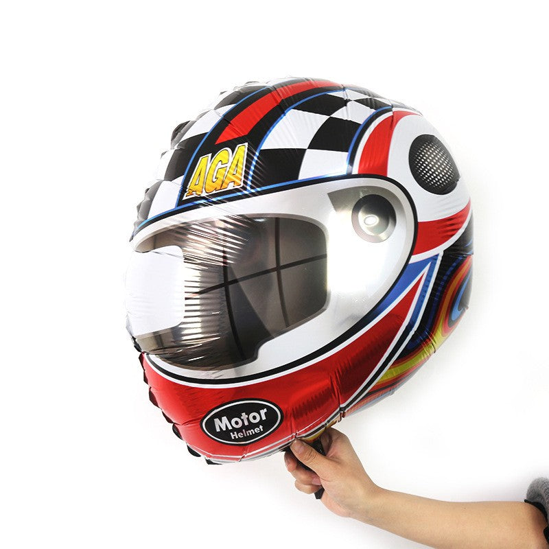 2 Baloane din Folie Metalizata, Figurine Cerc si Casca, Model Curse, 75- cm, Ambalaj Individual, Pai Inclus, Umflare cu Aer sau Heliu