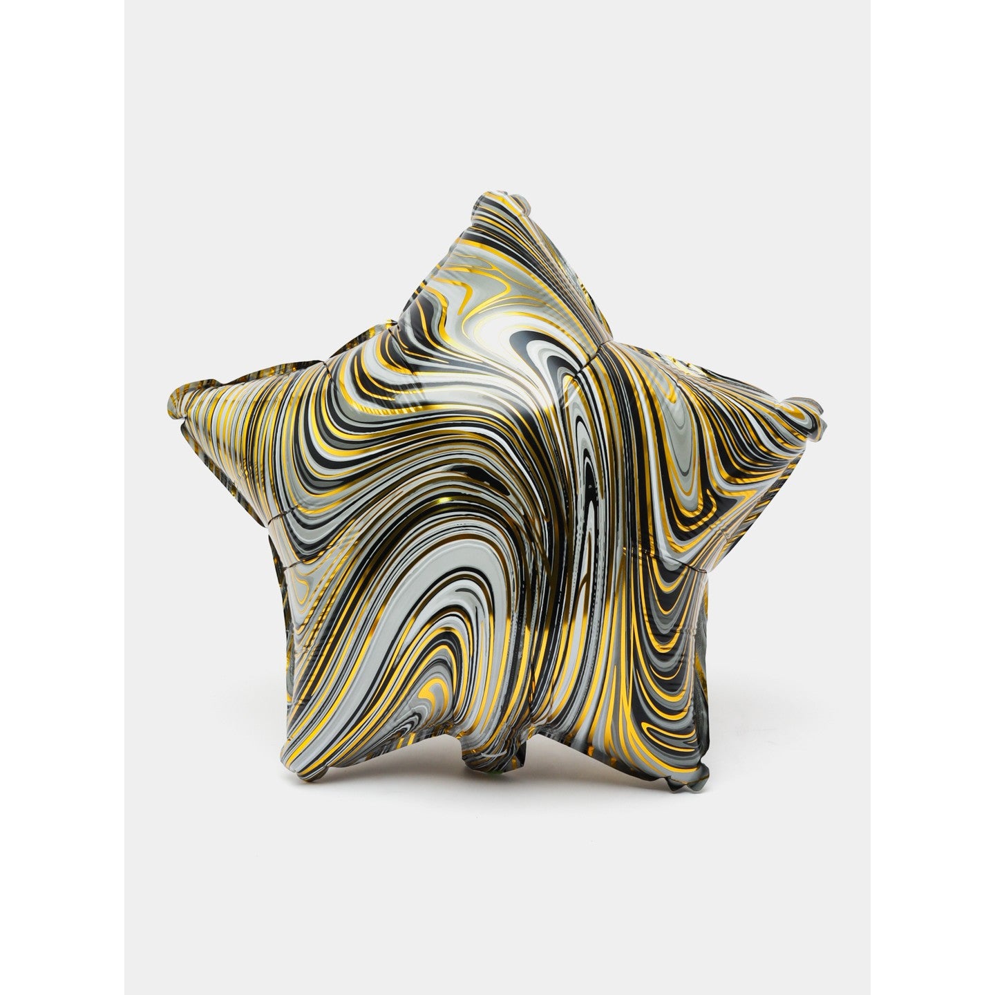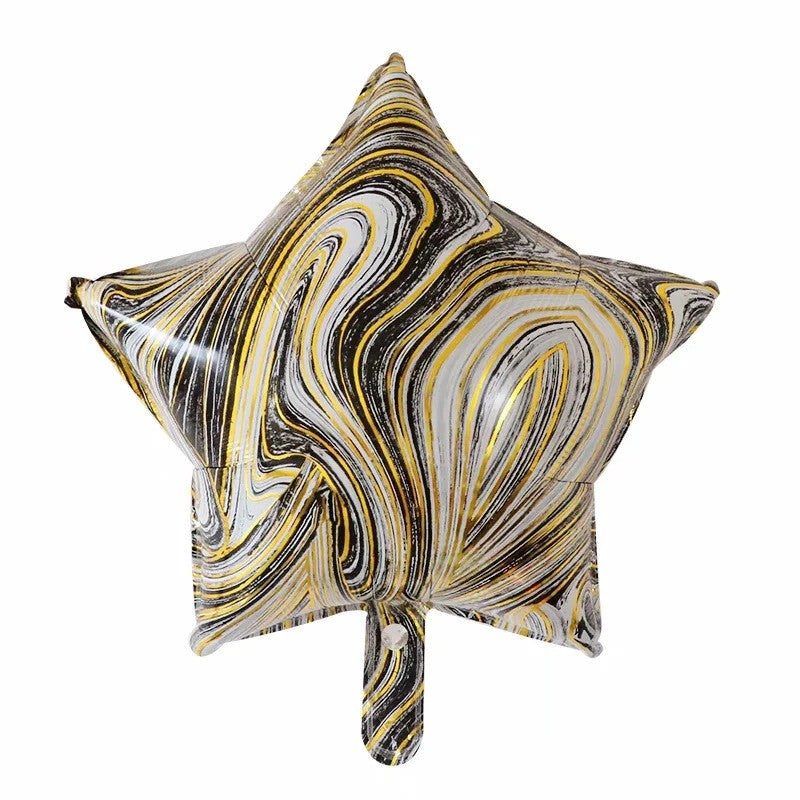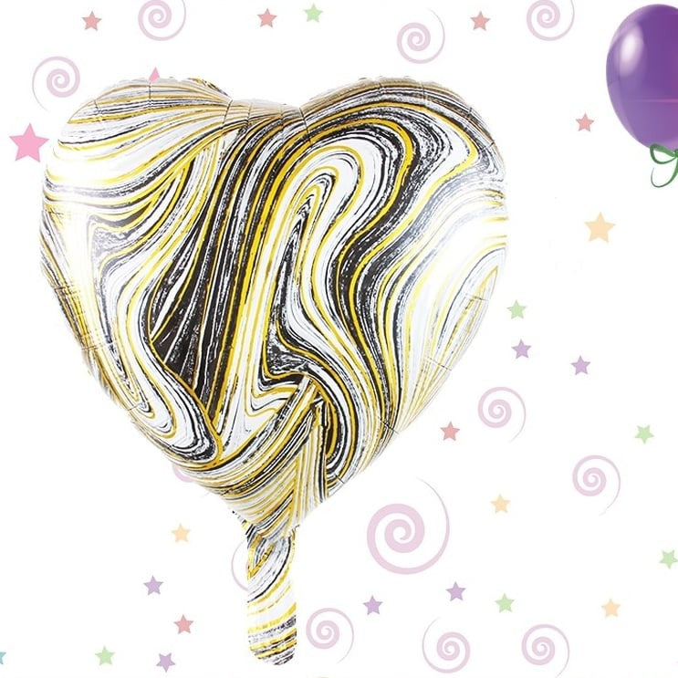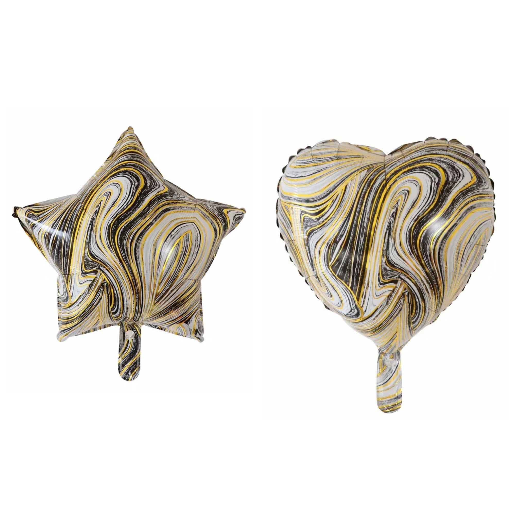 2 Baloane din Folie Metalizata, Figurine Inima si Stea, Model Marmura,Ambalaj Individual, Pai Inclus, Umflare cu Aer sau Heliu