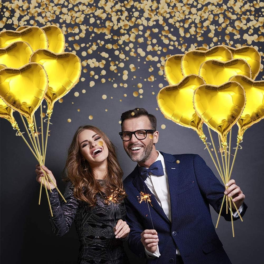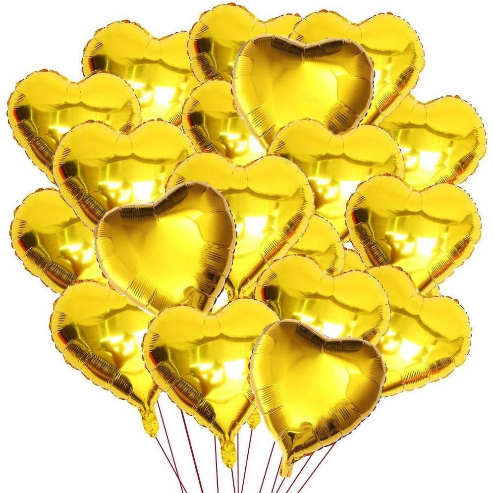 2 Baloane din Folie Metalizata, Model Inimi, Tema Ziua Indragostitilor,Ambalaj Individual, Pai Inclus, Umflare cu Aer sau Heliu