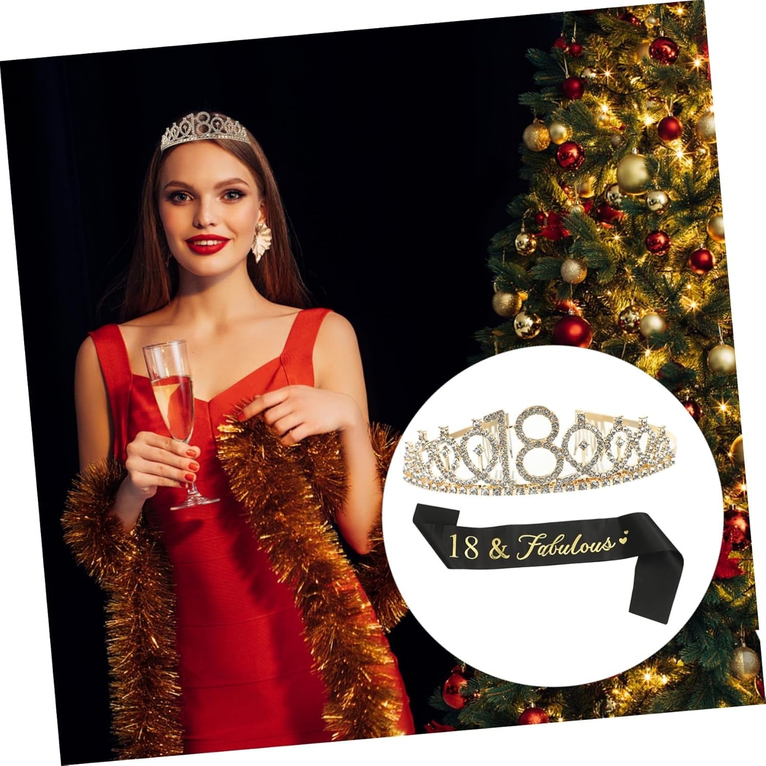 2 Piese pentru Majorat,Coronita Printesa Gold si Panglica 18&Fabulous