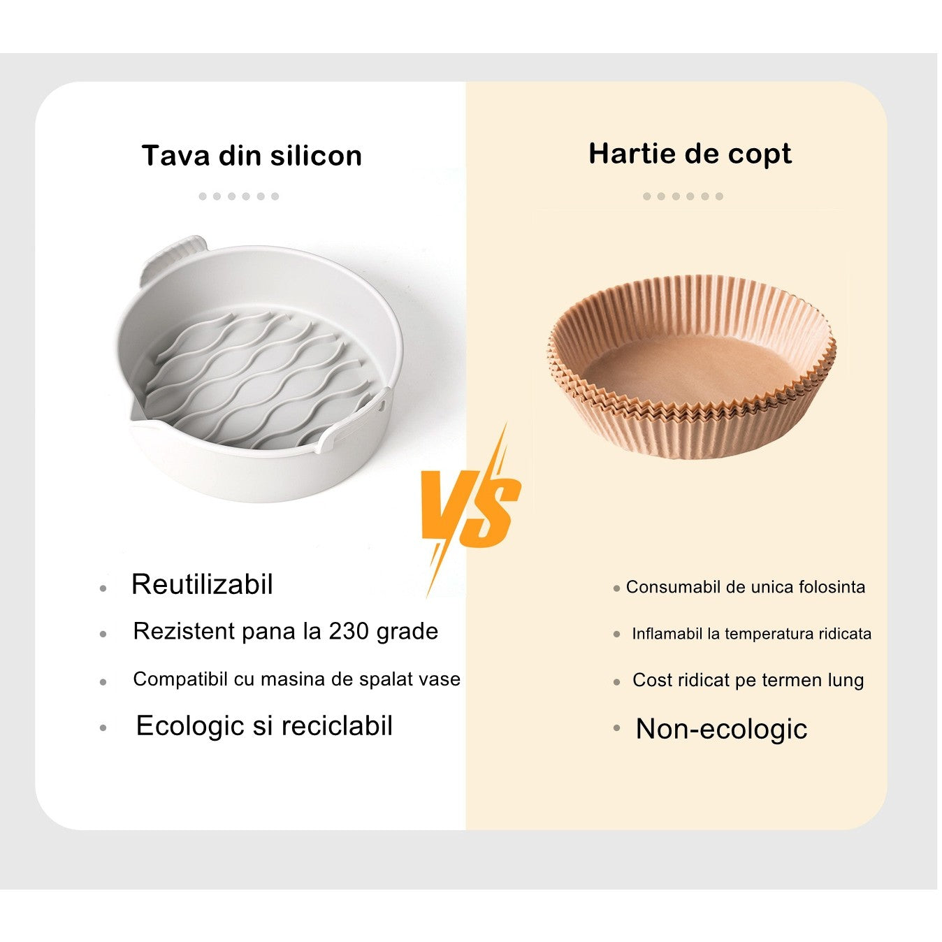 2 tavi din silicon ecologic pentru air fryer temperatura maxima 230 grade, reutilizabile, reciclabile, cu manere anti-alunecare, fund antiaderent