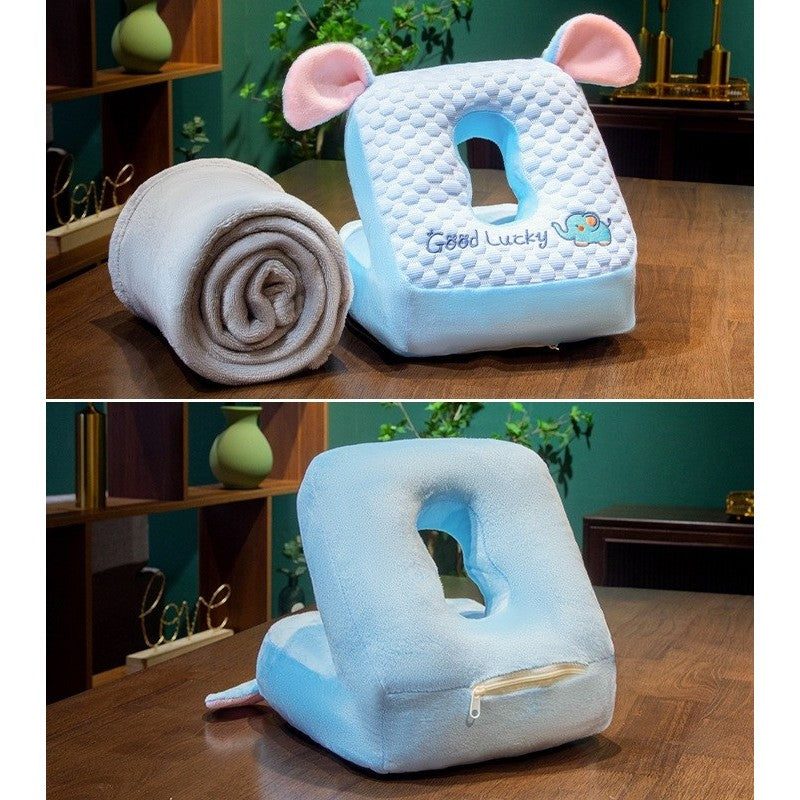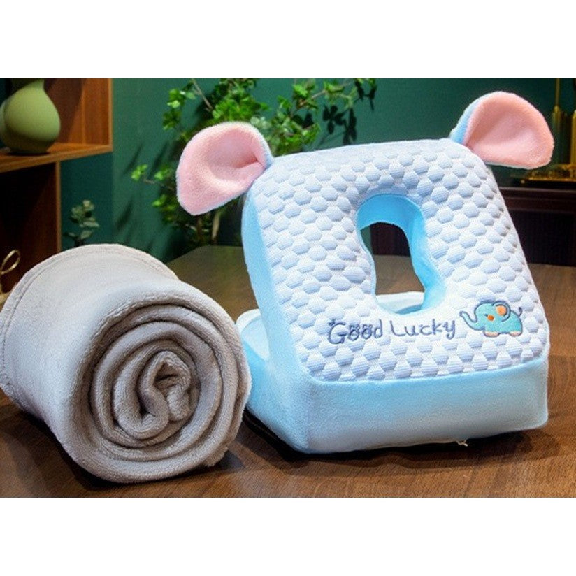 2in1 Patura Microfibra si Perna din Spuma, pentru Birou, Calatorii, Pauze, Model Elefant, Microfibra,