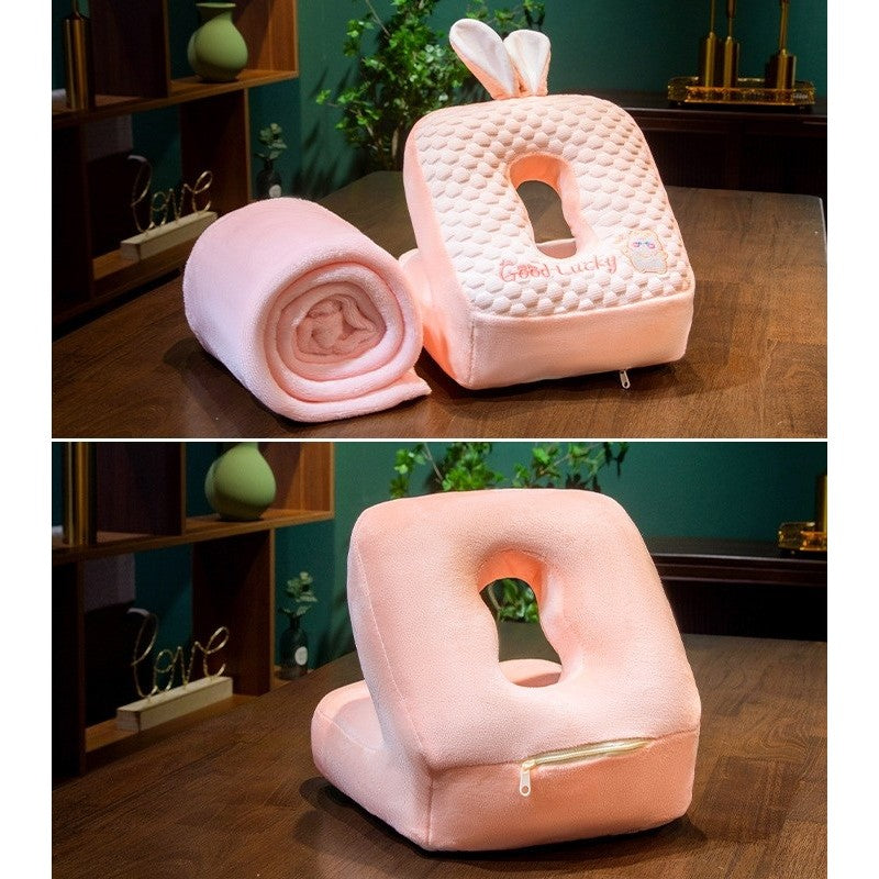2in1 Patura Microfibra si Perna din Spuma, pentru Birou, Calatorii, Pauze, Model Iepuras, Microfibra,