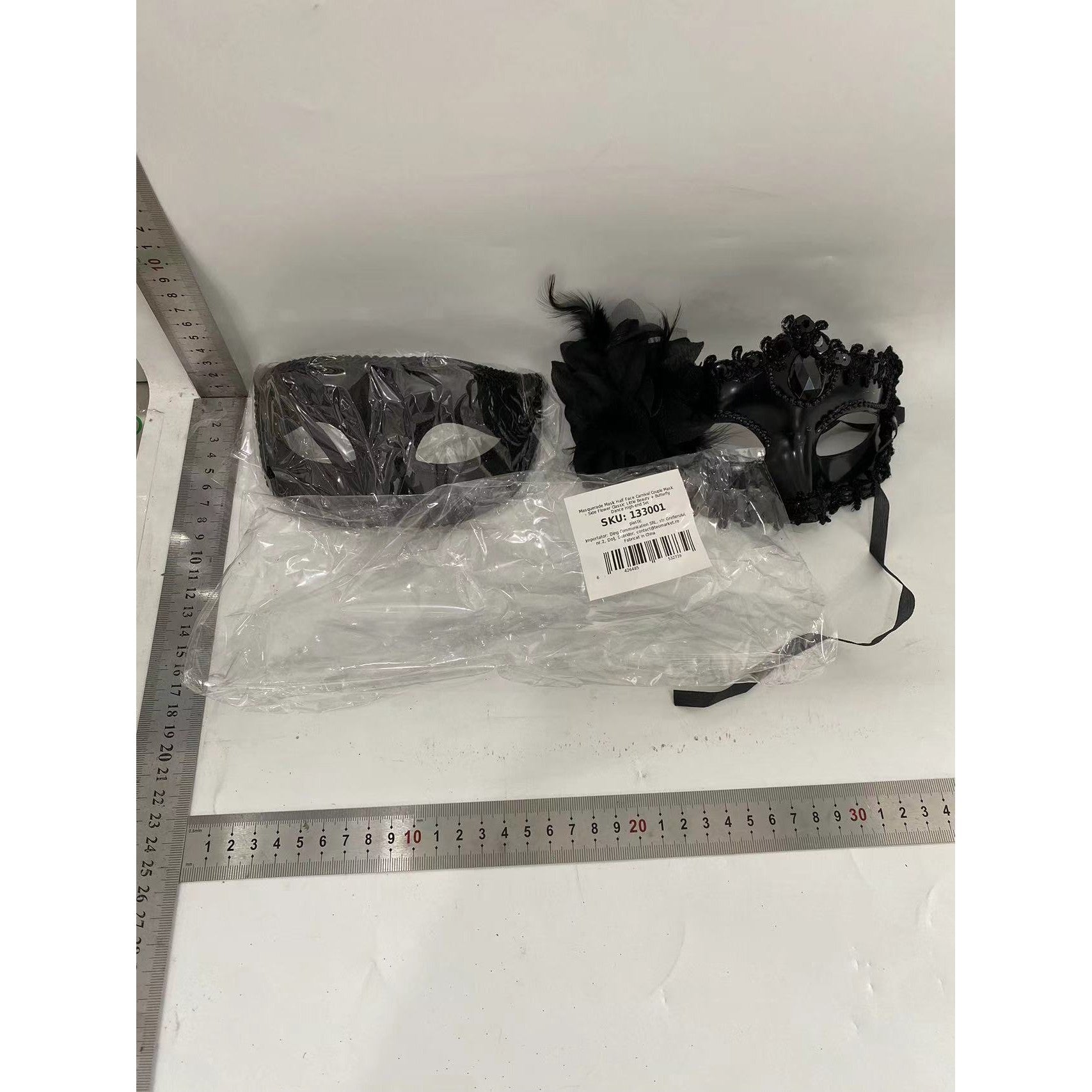 2 Masti de Cuplu, pentru Carnaval, Bal Mascat, Marime Universala, Model Floare Laterala si Margele, Model Clasic