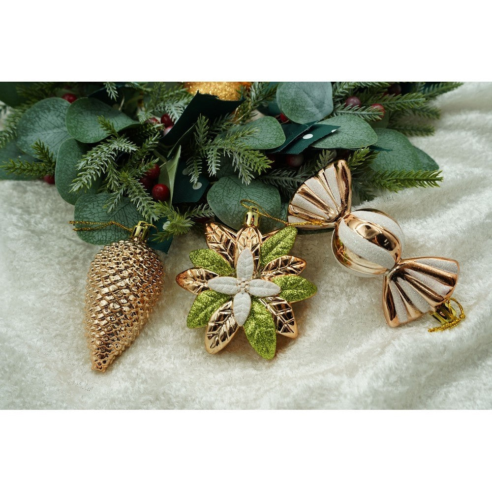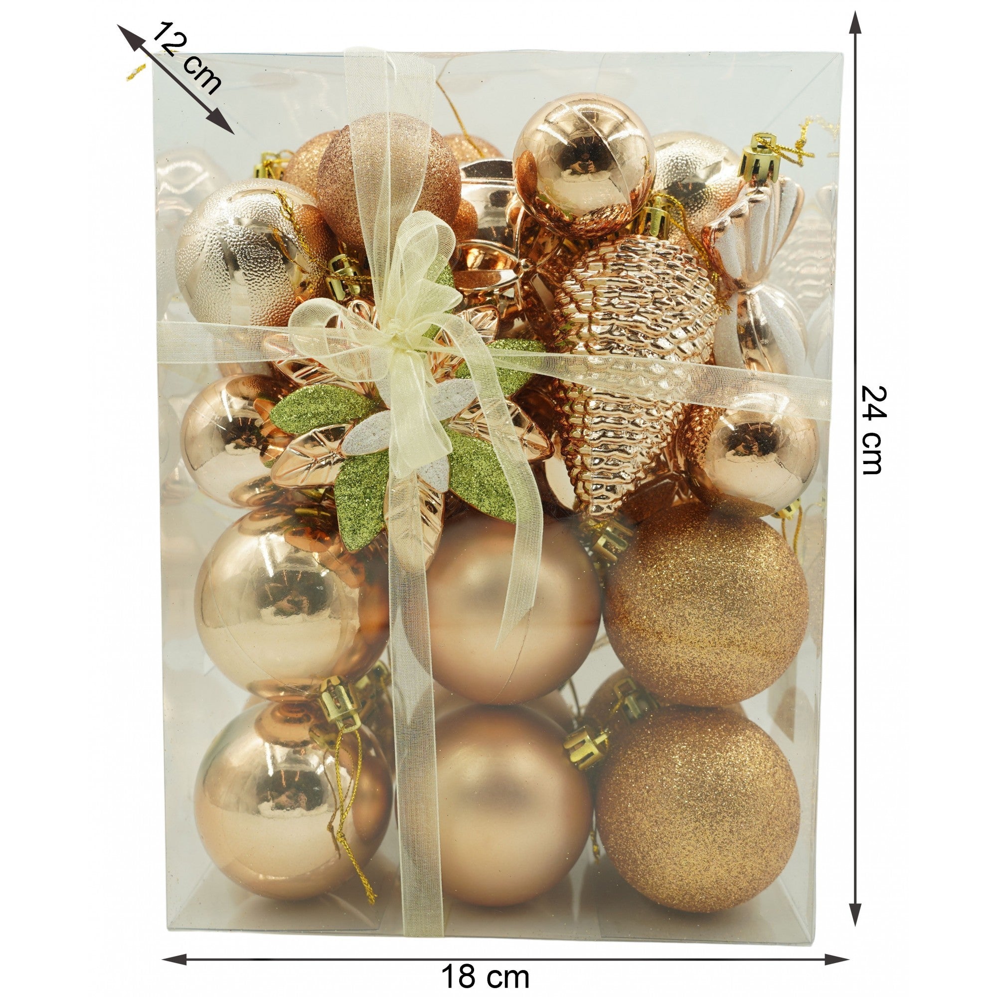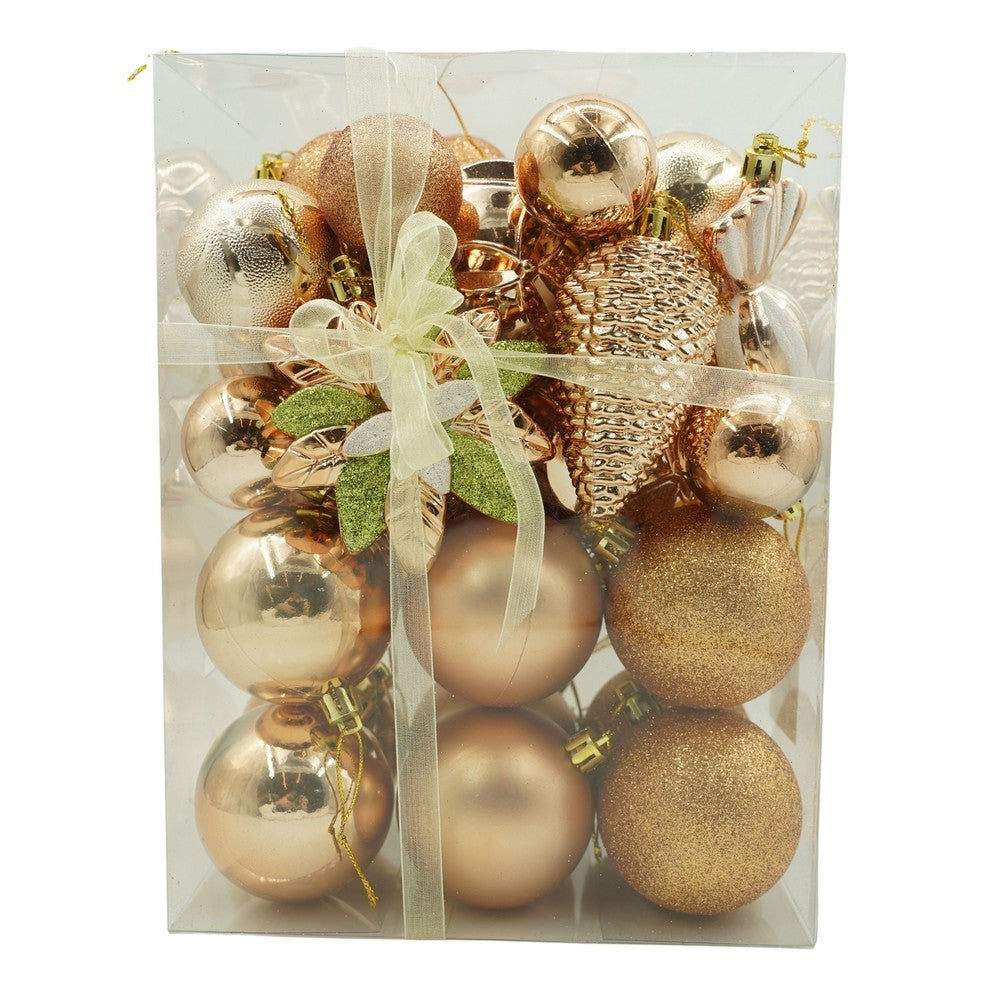 de 38 ornamente de brad, de tip Glob, Aramiu, din plastic, cu finisaj sclipitor , adancime x inaltime x lungime
