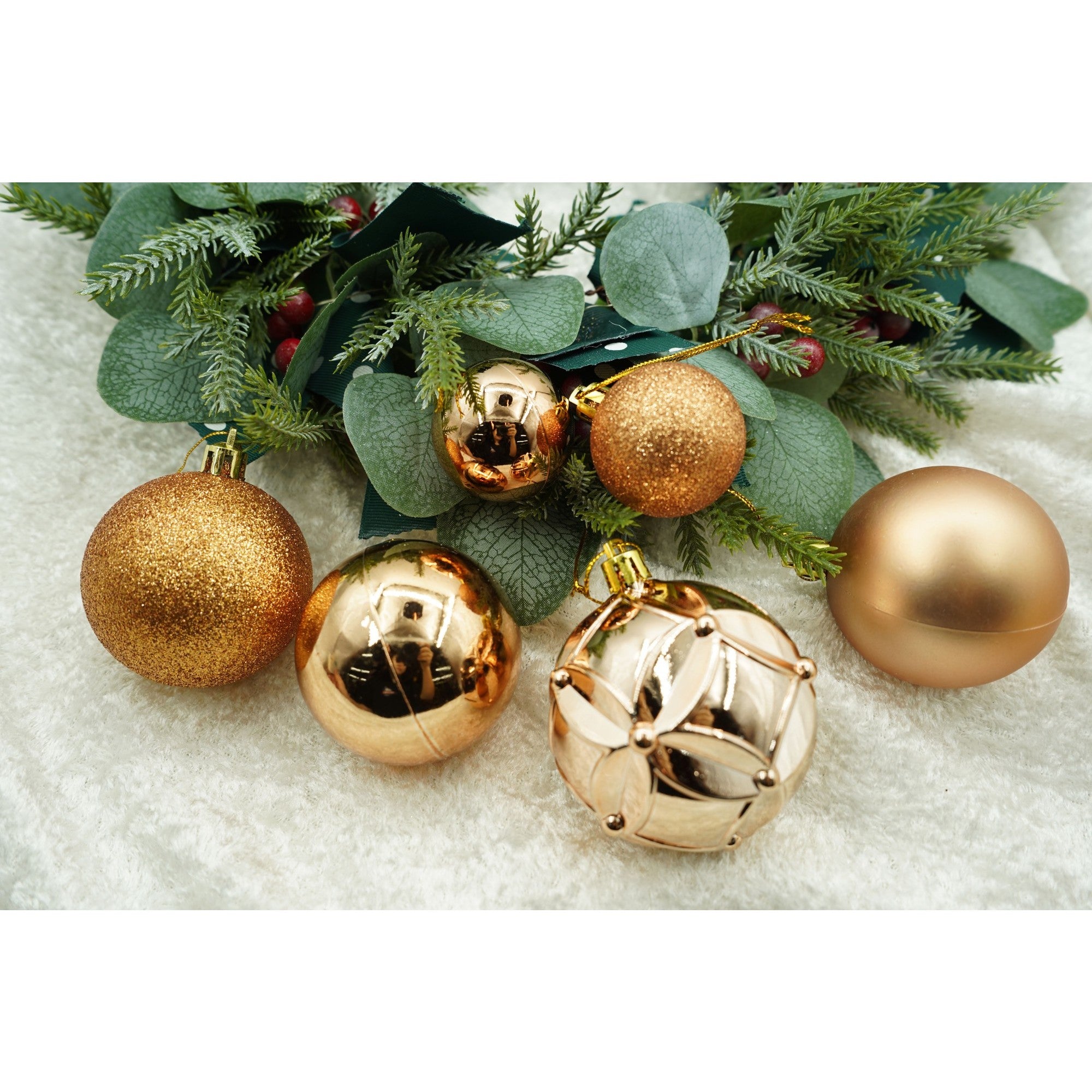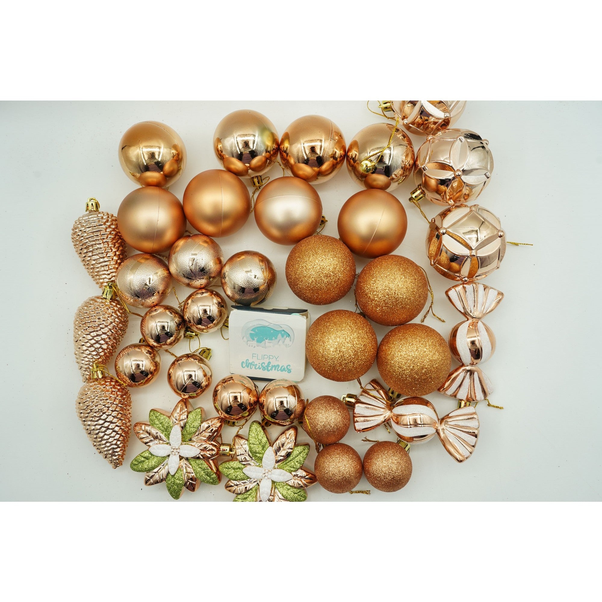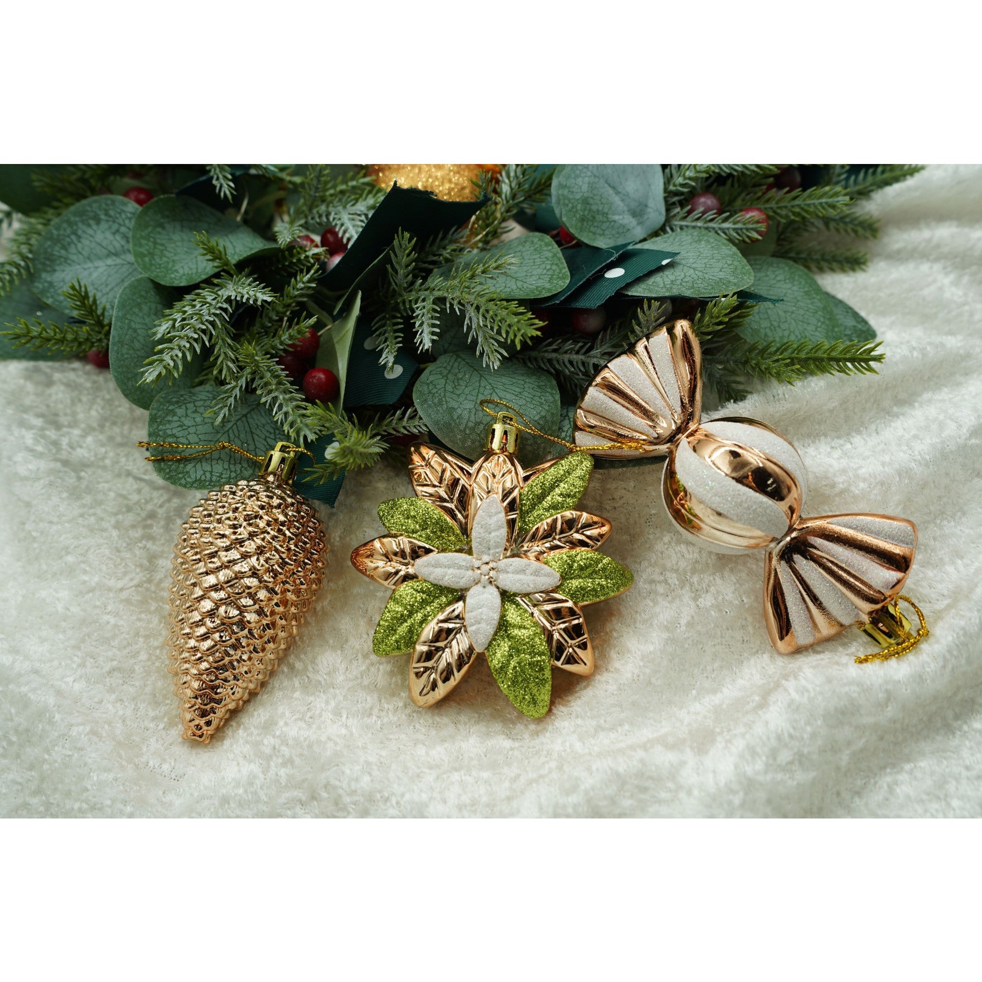 de 38 ornamente de brad, de tip Glob, Aramiu, din plastic, cu finisaj sclipitor , adancime x inaltime x lungime