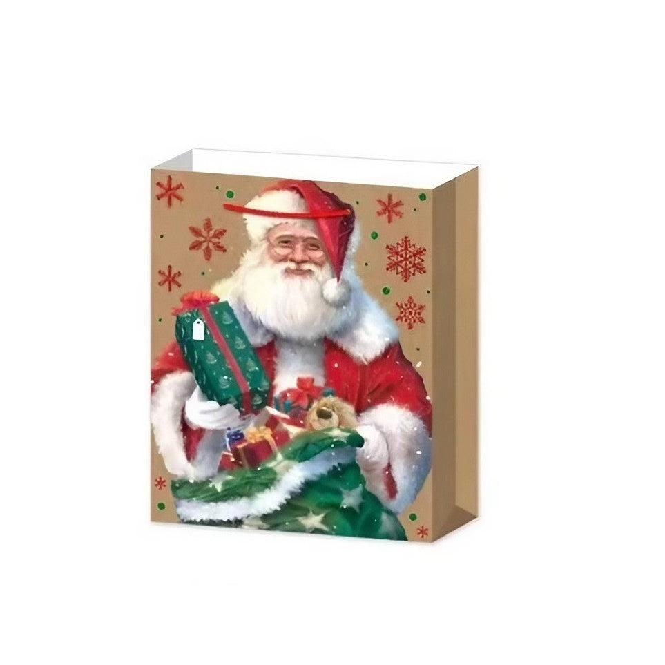 6 Pungi Cadou, Imprimeu Tematica Mos Craciun, Model Random, din Hartie, Impachetare Usoara a Cadourilor