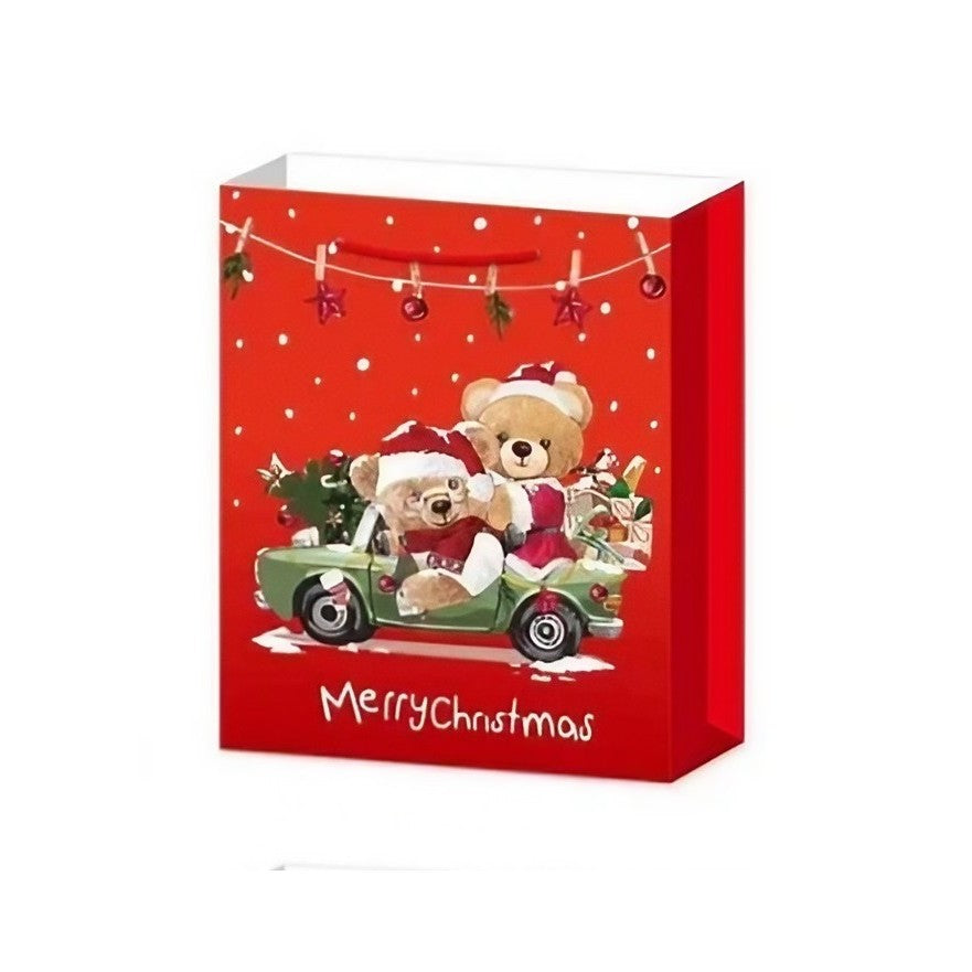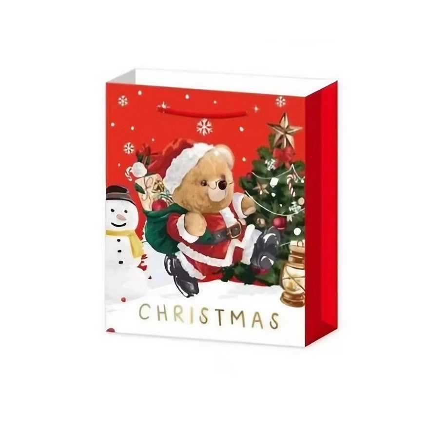 6 Pungi Cadou, Imprimeu Tematica Mos Craciun, Ursuleti, Brazi, Model Random, din Hartie, Impachetare Usoara a Cadourilor
