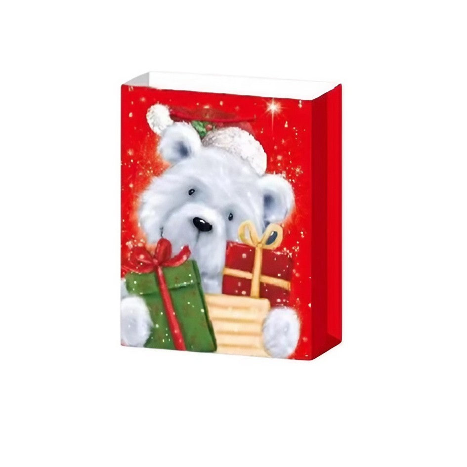 6 Pungi Cadou, Imprimeu Tematica Mos Craciun si Ursuleti, Model Random, din Hartie, Impachetare Usoara a Cadourilor