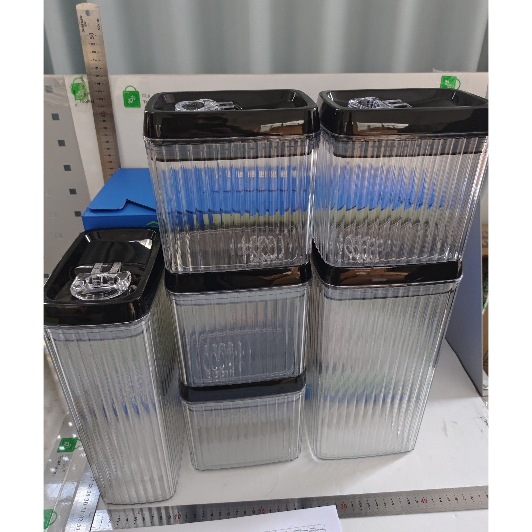 6 Recipiente din Plastic, pentru Alimente/Obiecte, Inchidere Ermetica, Textura Ondulata, .5l, .3l