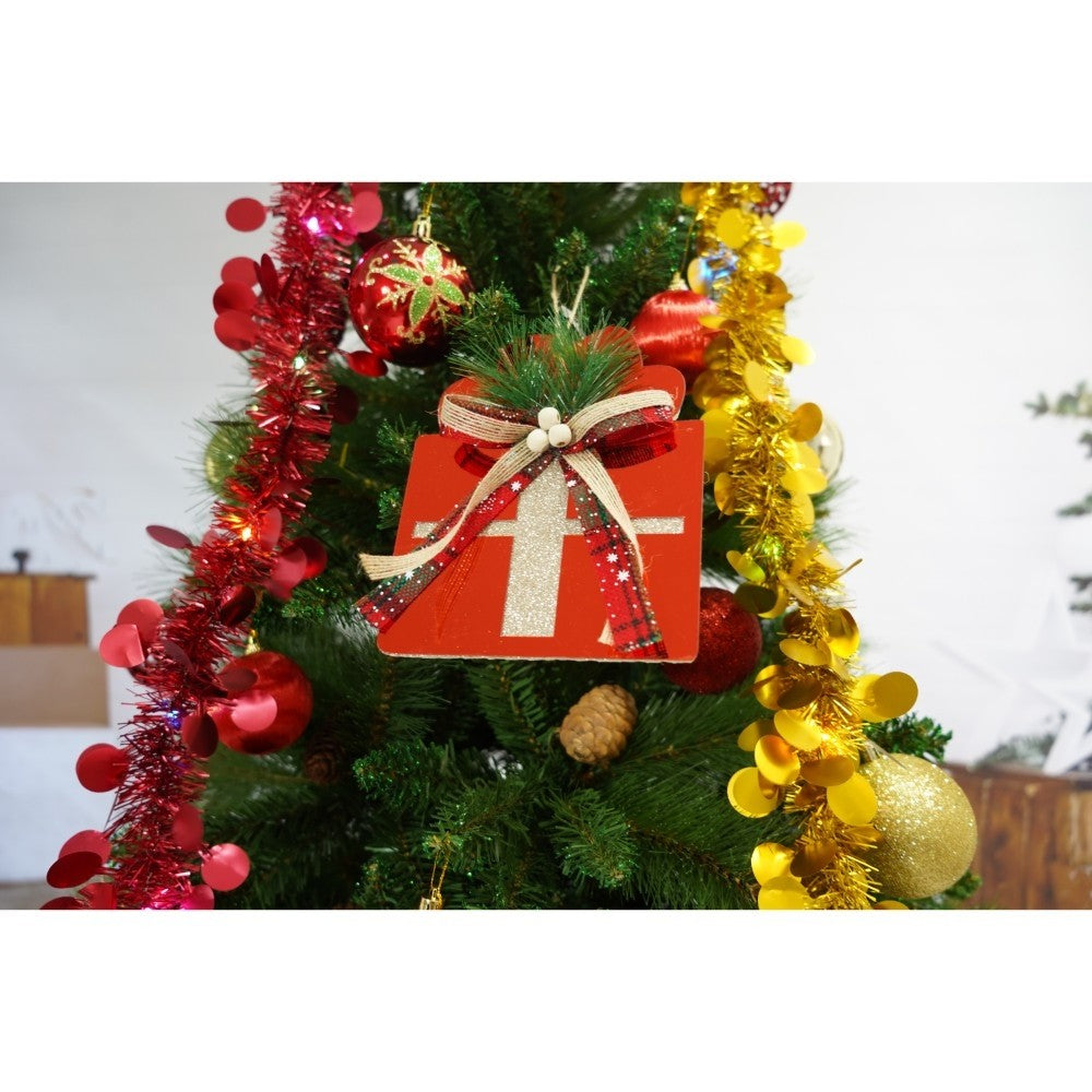brad artificial de Craciun si elemente decorative, Decorat cu conuri de pin, pentru interior/exterior, inaltime , diametru , 1057 ramuri