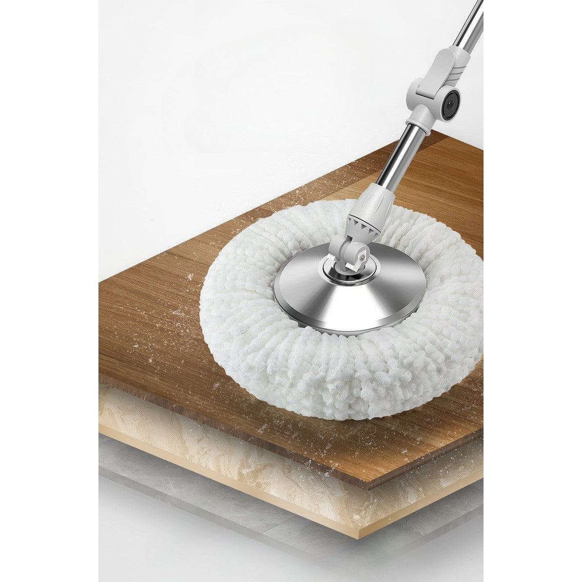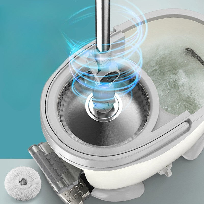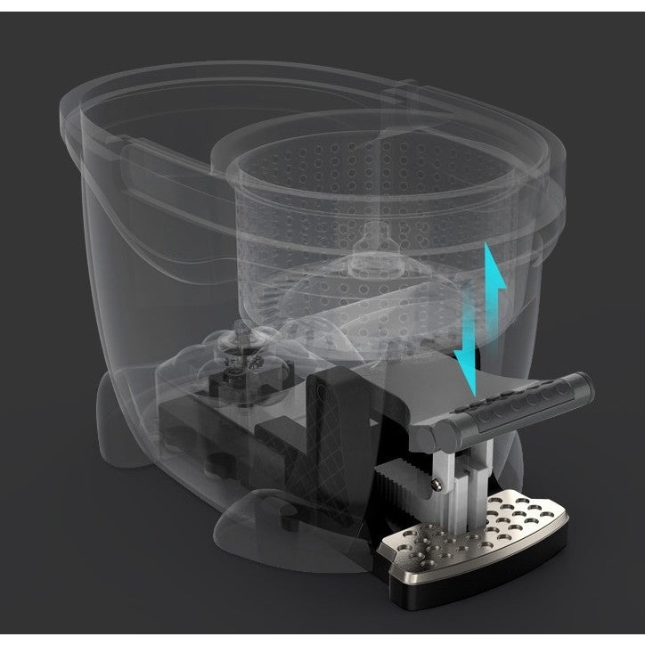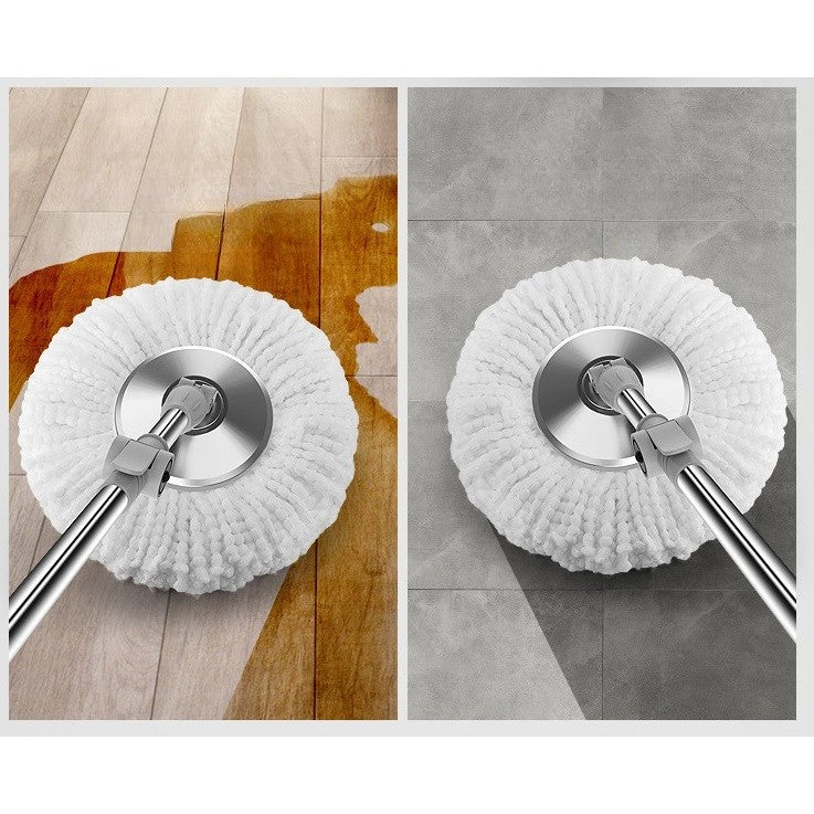 Galeata cu Pedala si Mop Rotativ 360°, Cu Actiune Centrifuga x4, Pentru Uz Casnic, Maner din Otel Inoxidabil Telescopic, 2 Capte din Bumbac