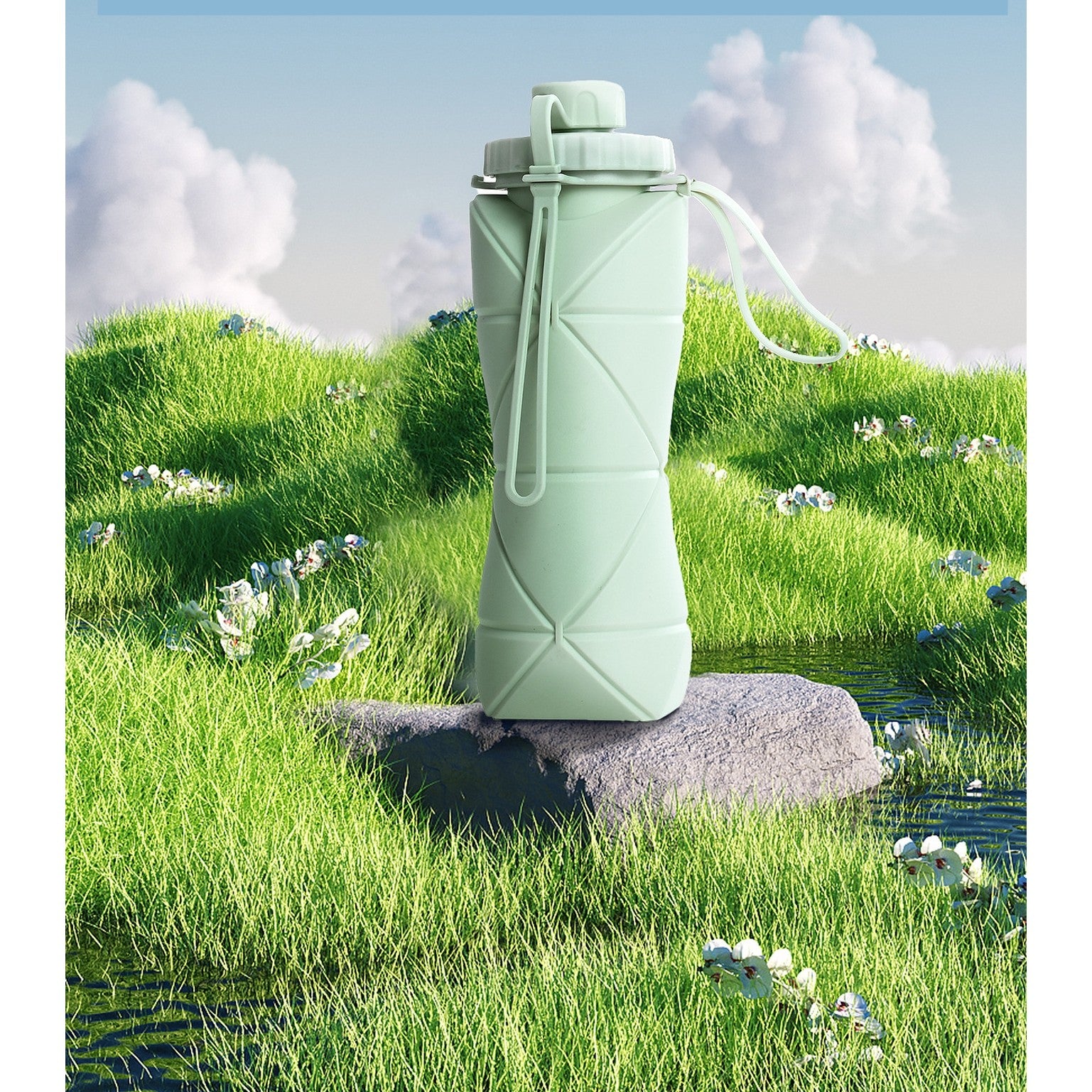 Sticla de apa pliabila din silicon,reutilizabila, rezistenta la temepreturi ridiate, usor de depozitat si carat,600 ml