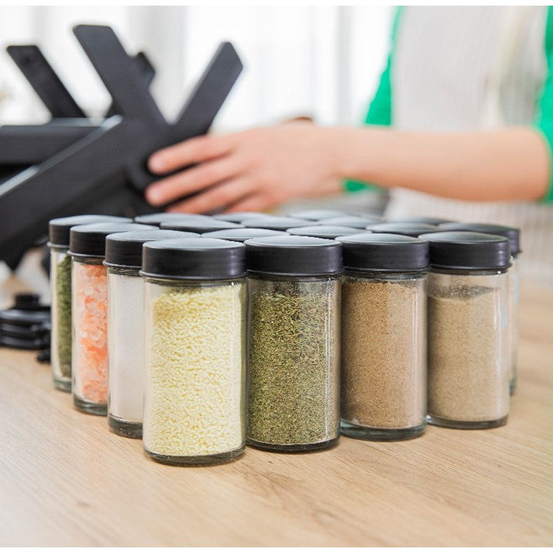 Suport Pentru Condimente Rotativ, Multifunctional, Pivotant 360°, Portabil, Usor de Montat,ABS/Sticla