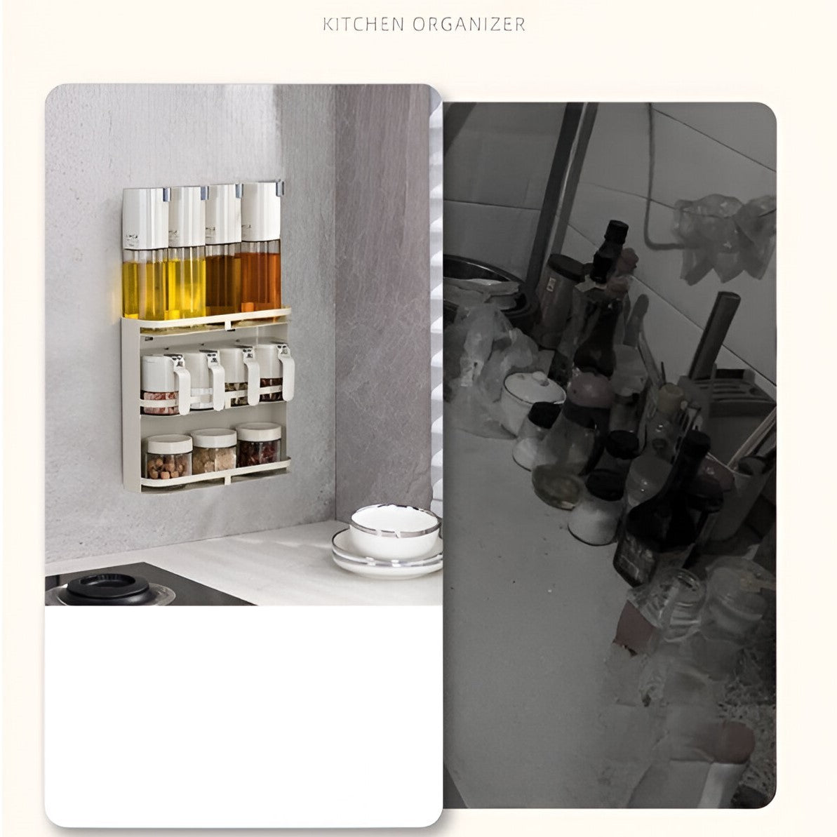 Suport pentru Depozitare Condimente, Ulei, Otet, Montare pe Perete din 12 Piese, Uz Casnic, pentru Bucatarie
