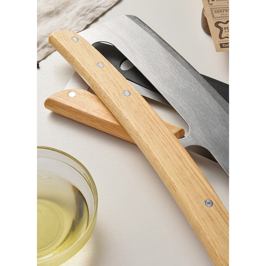 Taietor Feliator de Pizza, din Otel Inoxidabil, cu Capac, Maner din Lemn, Antialunecare, Lama Neteda si Ascutita