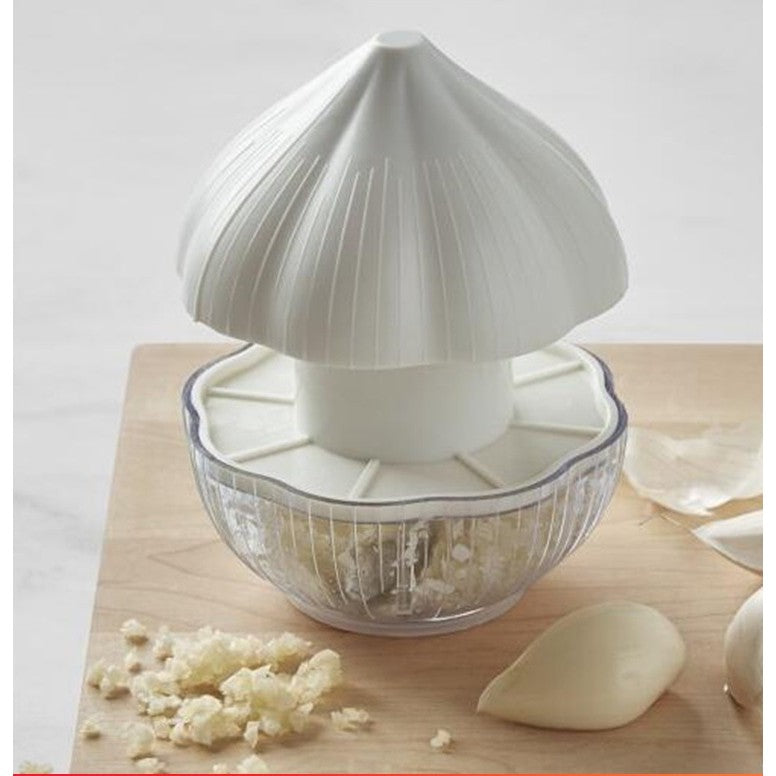 Tocator manual pentru usturoi, in forma de usturoi, cutite rezistente, utilizare prin apasare, material ABS si inox