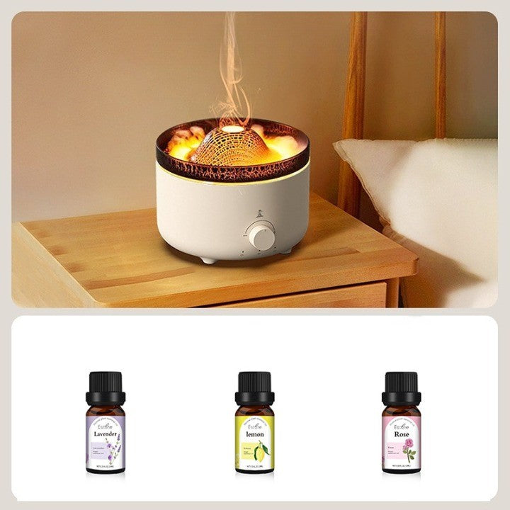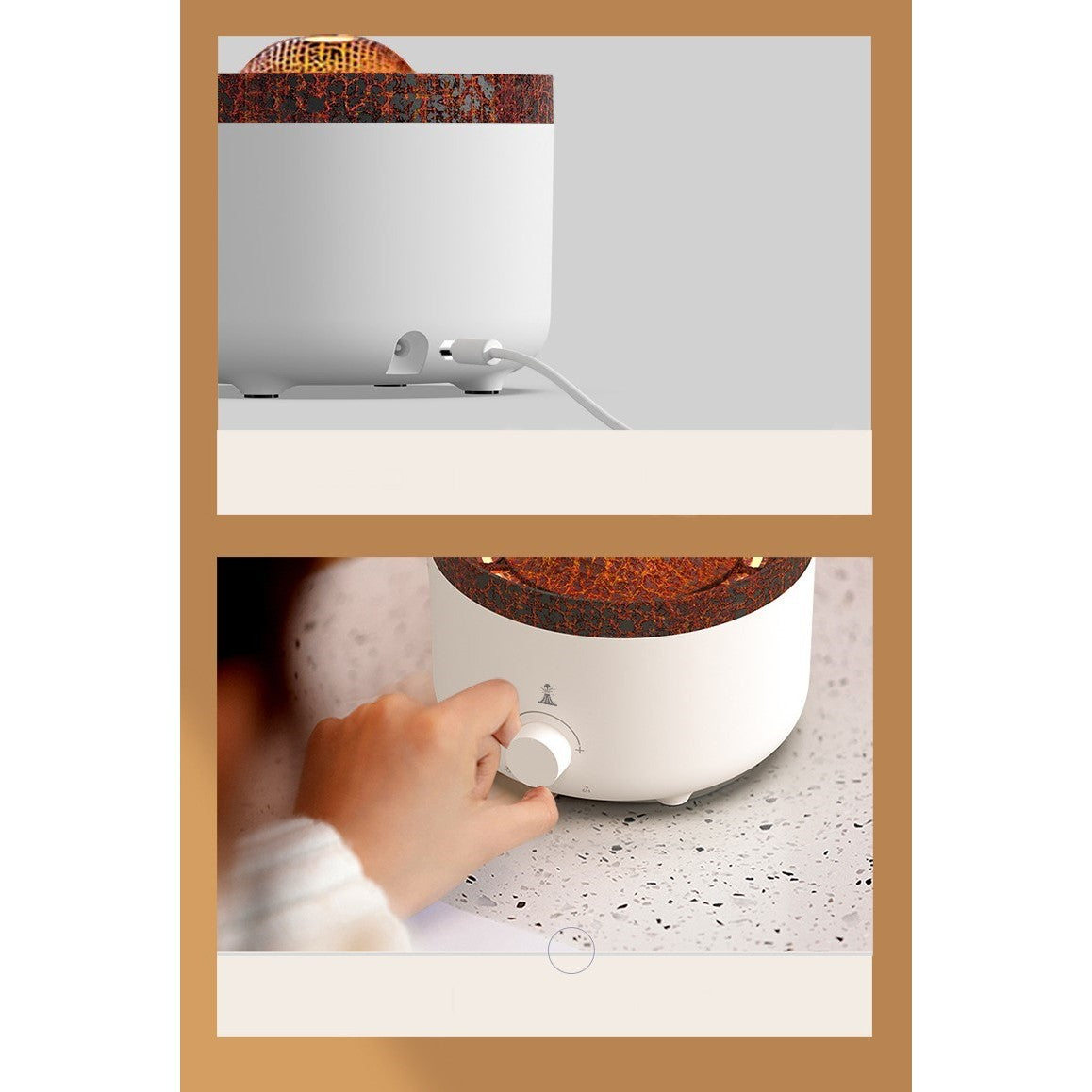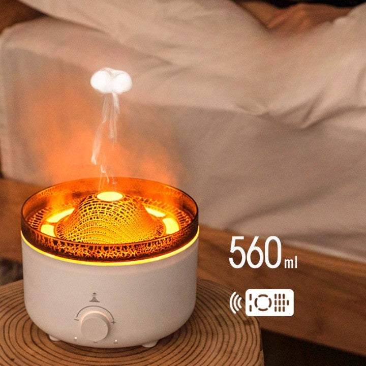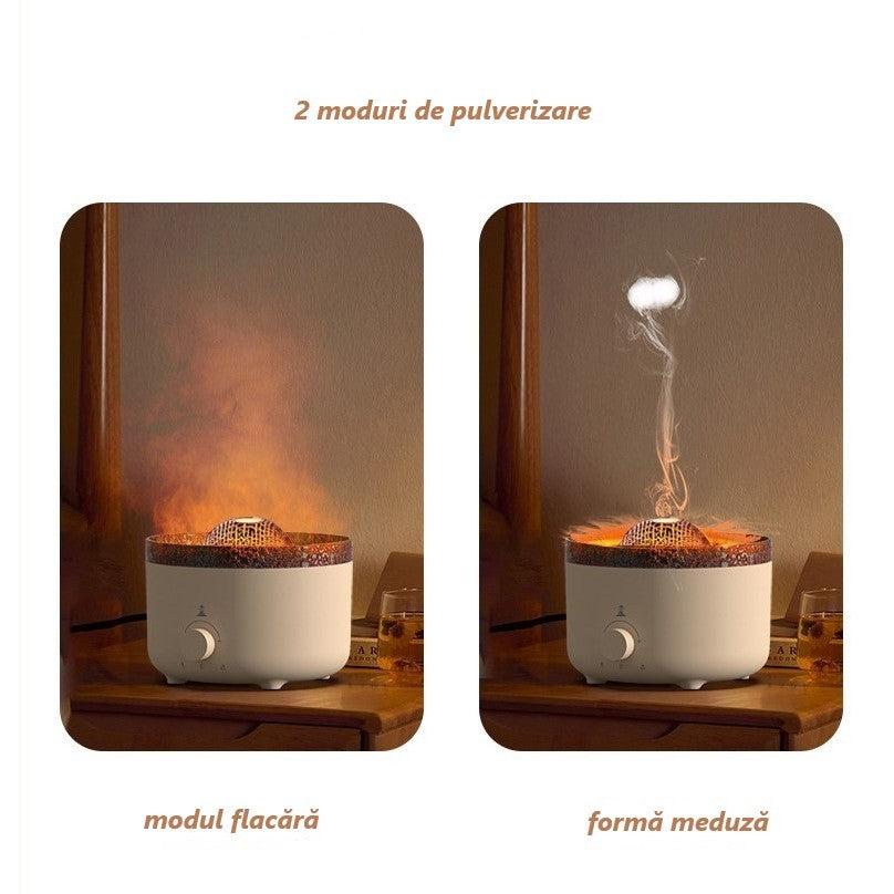 Umidificator de tip vulcan, cu aromaterapie, cu telecomanda, 560 ml, model V21A