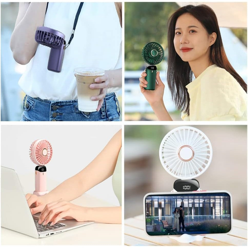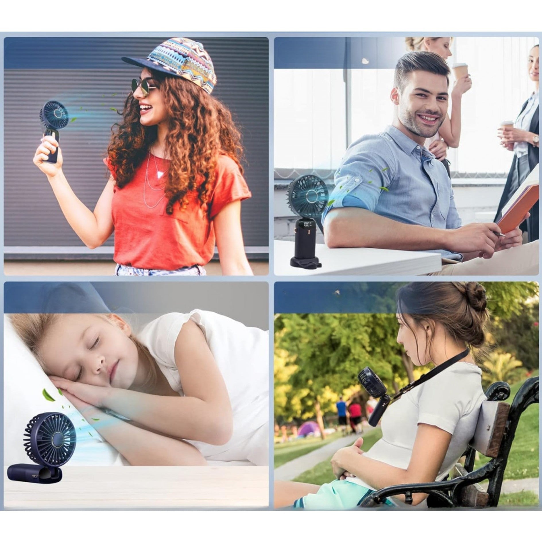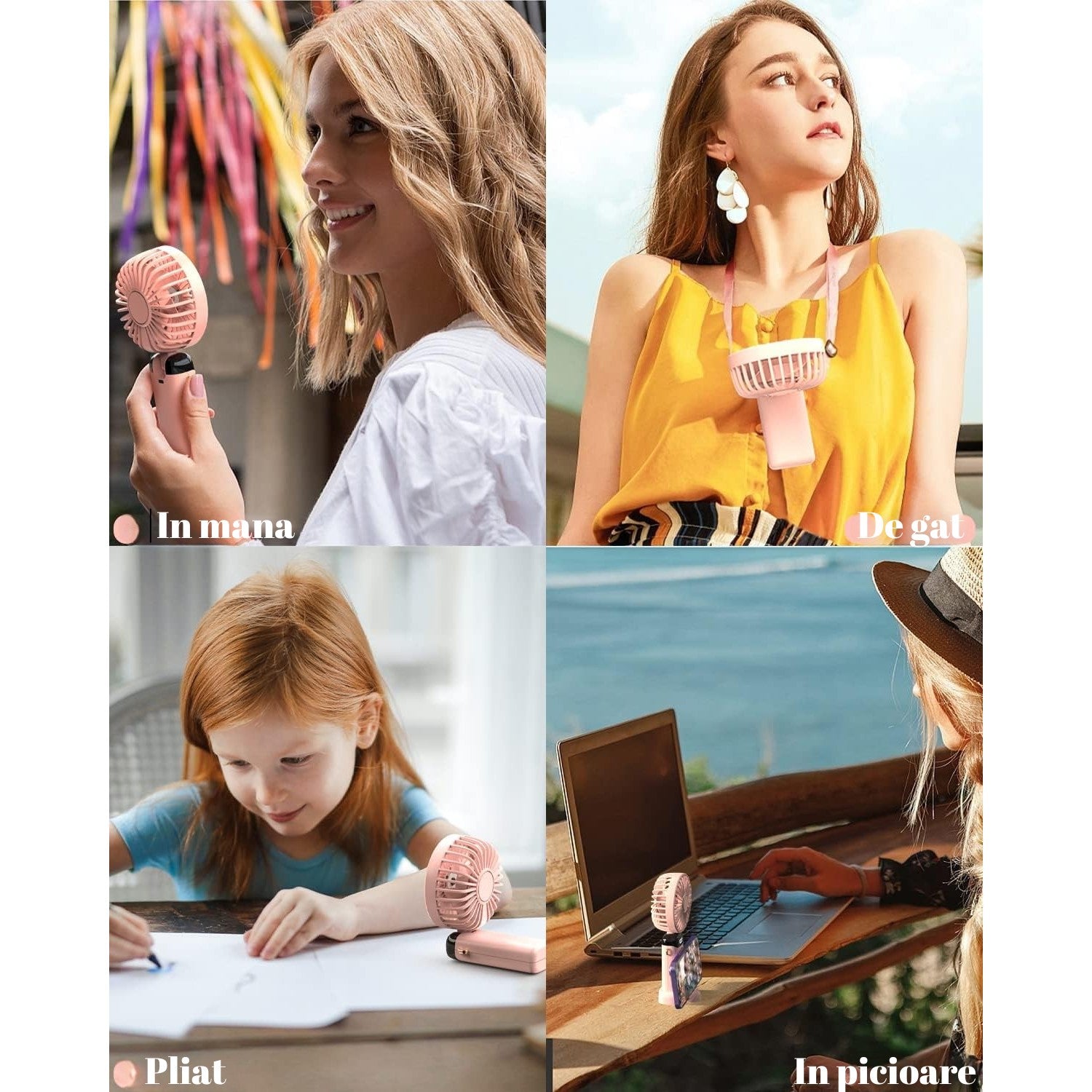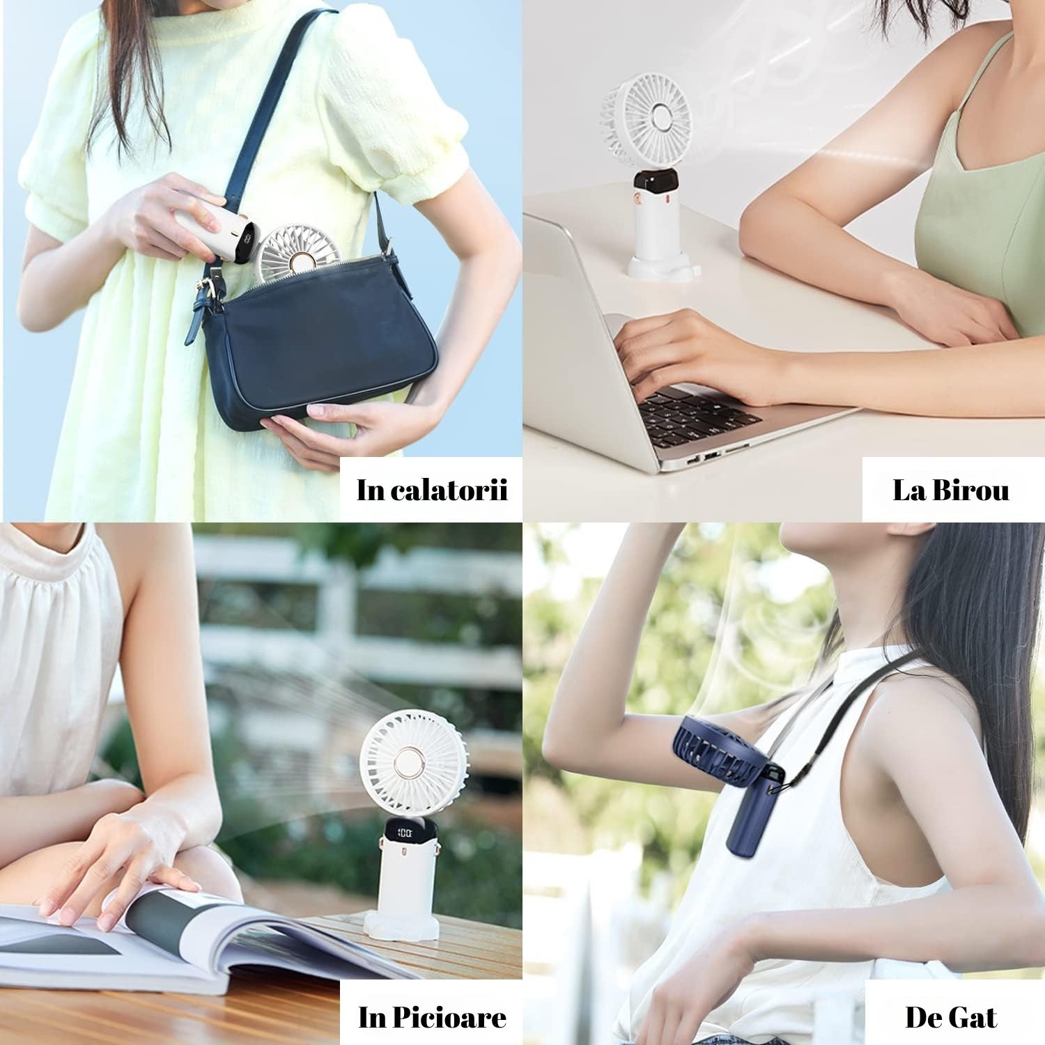 Ventilator Ultra Portabil cu Aromaterapie, 1, de Mana, de Birou, de Gat, 5 Trepte de Viteza, Incarcare USB, Autonomie 12h, Pliabil, cu Ecran LCD
